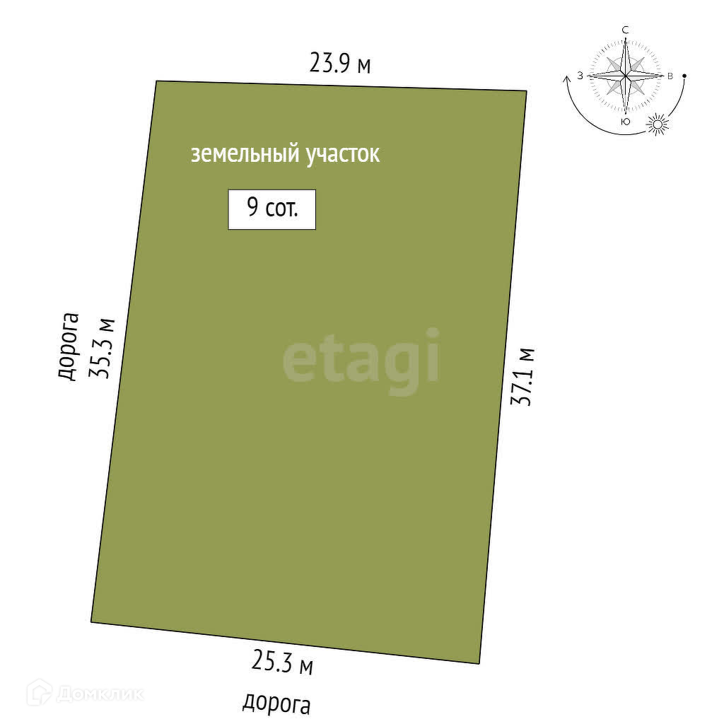 Площадь участка 9 сот.