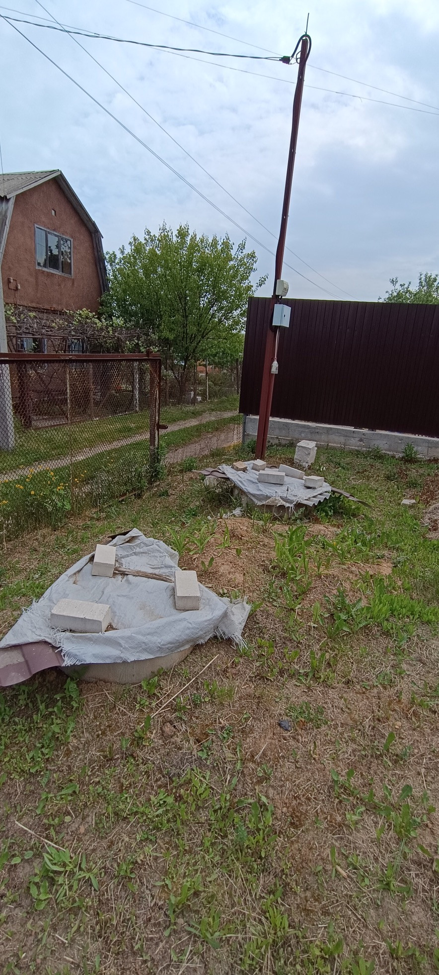 Канализация есть, скважины нет, забор с 2х сторон, участок 6 соток.