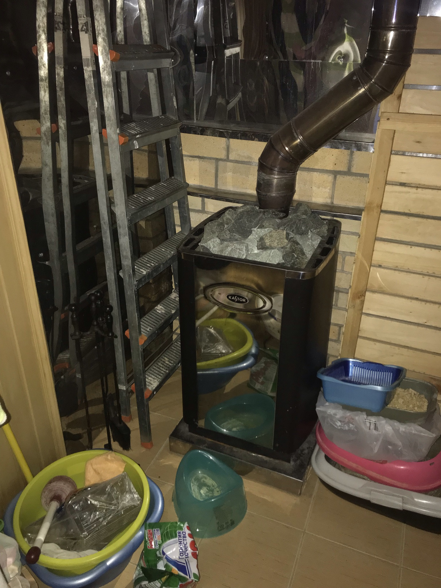 Парилка на дровах (топочная со стороны котельной)