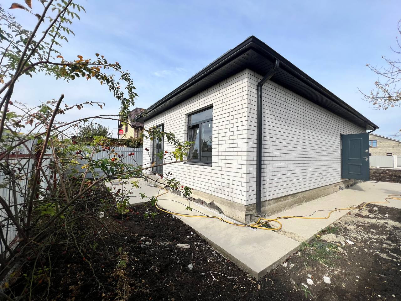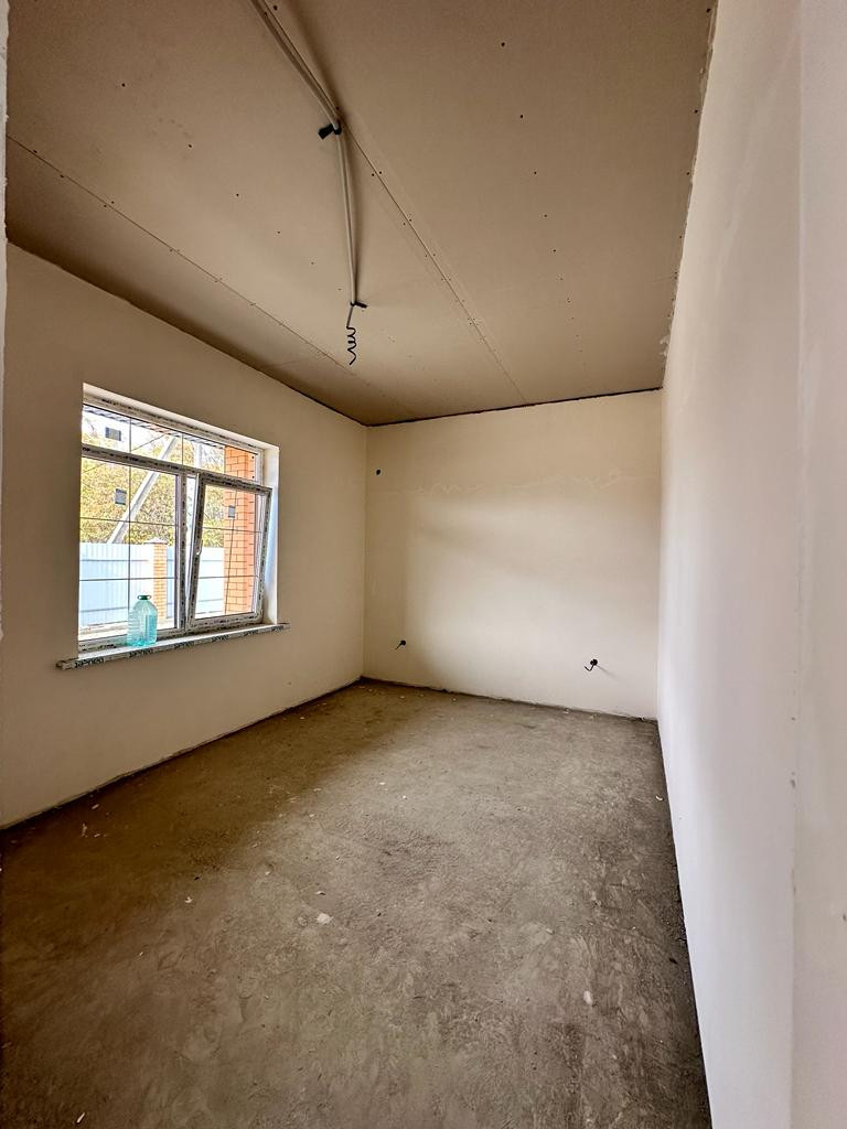 Продам новый кирпичный дом в районе Ейское шоссе, СНТ "Хуторок-2", Прикубанский округ Краснодара. Одноэтажный коттедж возведен в современном архитектурном стиле: ленточный фундамент, материал стен — газоблок, наружные стены —облицовочный кирпич, металлопластиковые окна с цветным профилем, кровля — металлочерепица. Дом общей площадью 80 кв. м современной планировки: холл, три изолированные спальни, кухня-гостиная с выходом на задний двор, раздельный санузел. Дом — в предчистовой отделке, теплые полы, радиаторы отопления, двухконтурный газовый котел. Коммуникации: свет, канализация — септик, вода — скважина 35 м, газ по меже Дом расположен на четырех сотках земли, назначения СНТ. Участок огорожен по периметру забором, откатные ворота, калитка. Прикубанский округ Краснодара, школа № 50. Рядом — магазин, на Ейском шоссе — большой гипермаркет "Магнит".