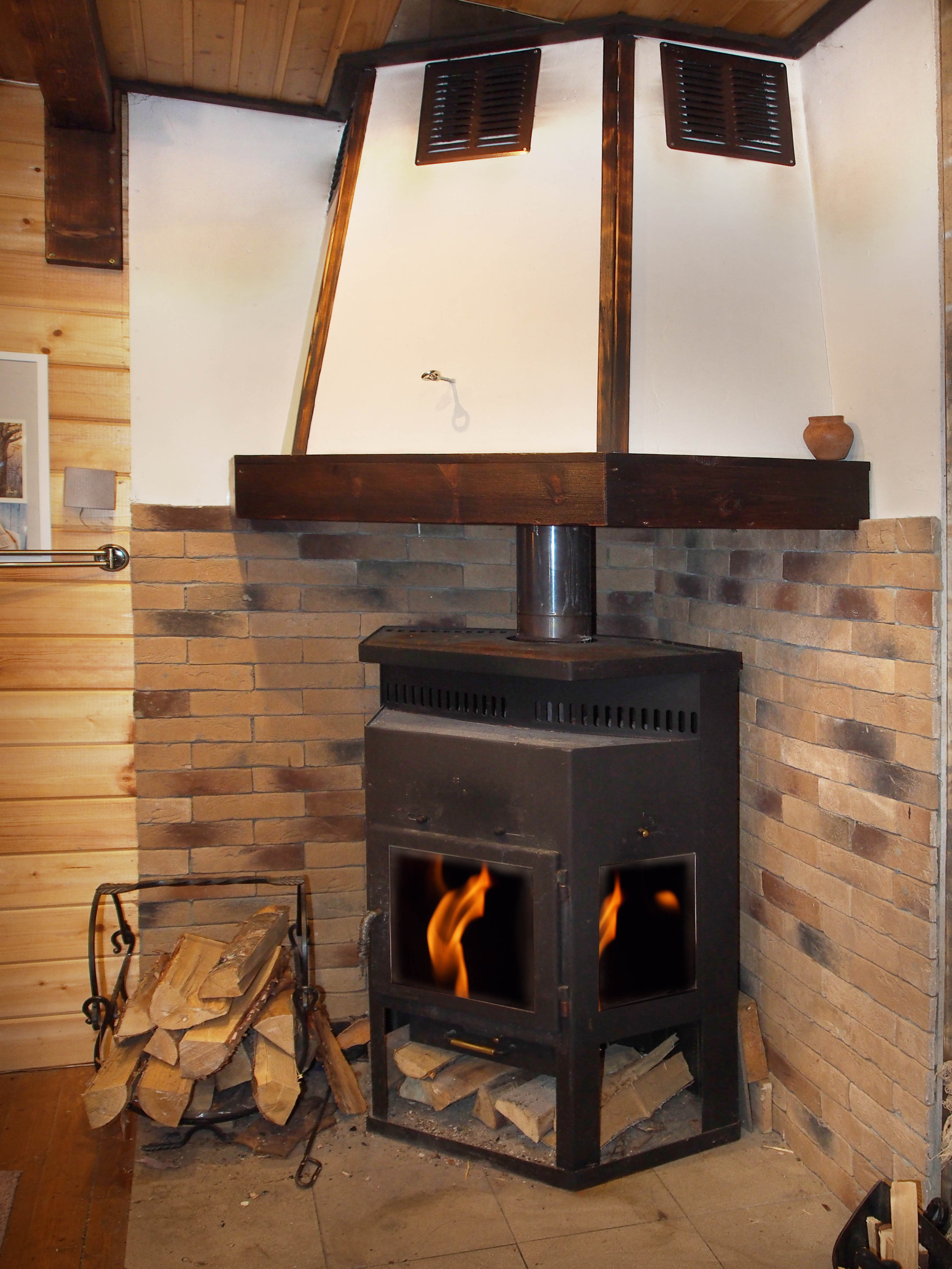 Коммуникации: электричество 10 кВт, 2 колодца с технической водой (вода заведена в дом и баню), локальная канализация отдельно на дом - 3 бетонных колодца по 2 кольца и на баню - 2 бетонных колодца по 2 кольца. Отопление дома – печь/камин, электроконвекторы.