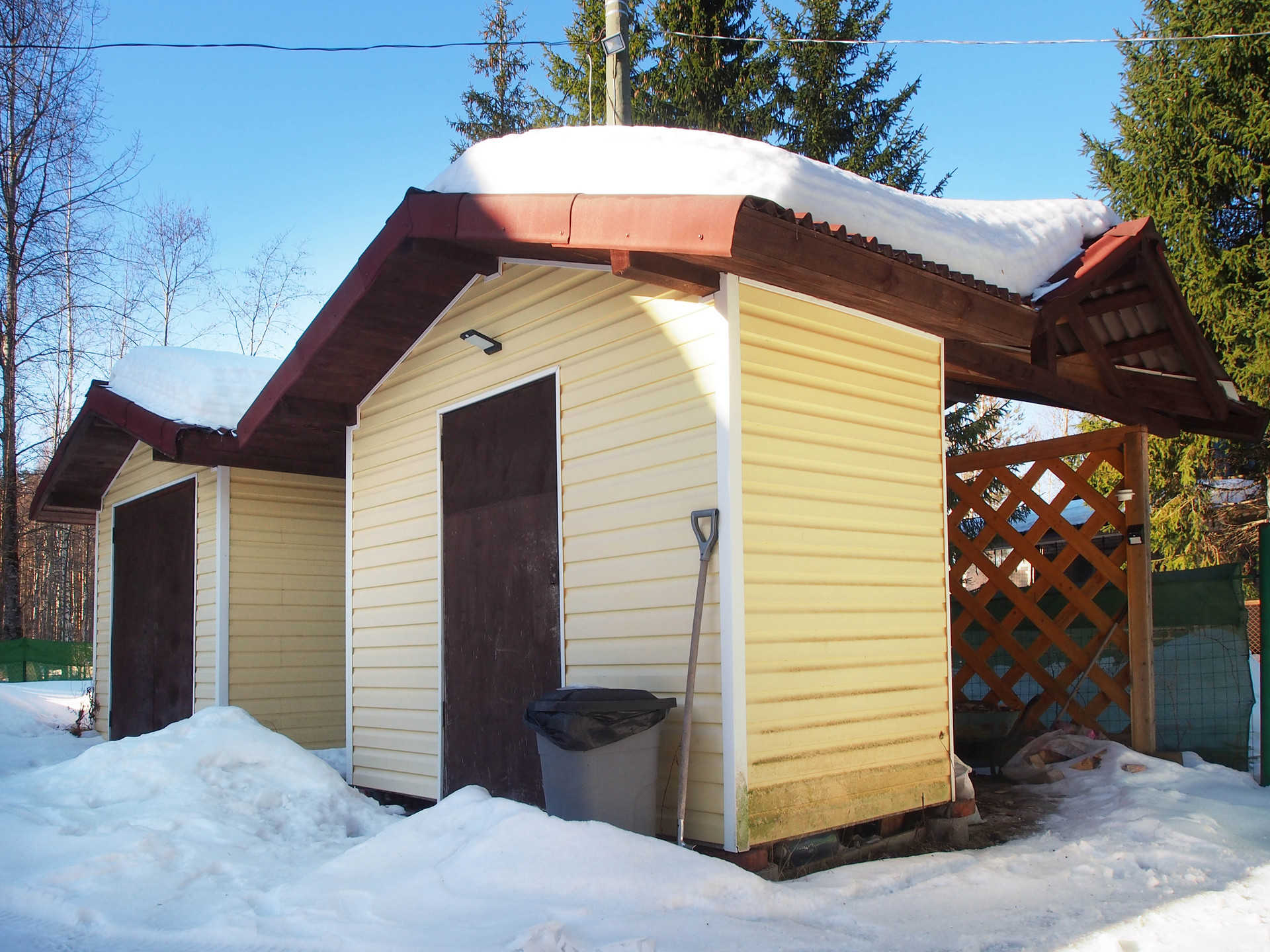 Участок крайний (соседи только с одной стороны), на границе с лесополосой, отсыпан песком, выровнен, уложен геотекстиль, хорошо освещен солнцем. На участке построены: мастерская с летней кухней и зоной отдыха, дровяник, гараж для садовой техники, хозяйственная постройка. Есть парник, небольшой искусственный пруд. Забор по всему периметру участка.