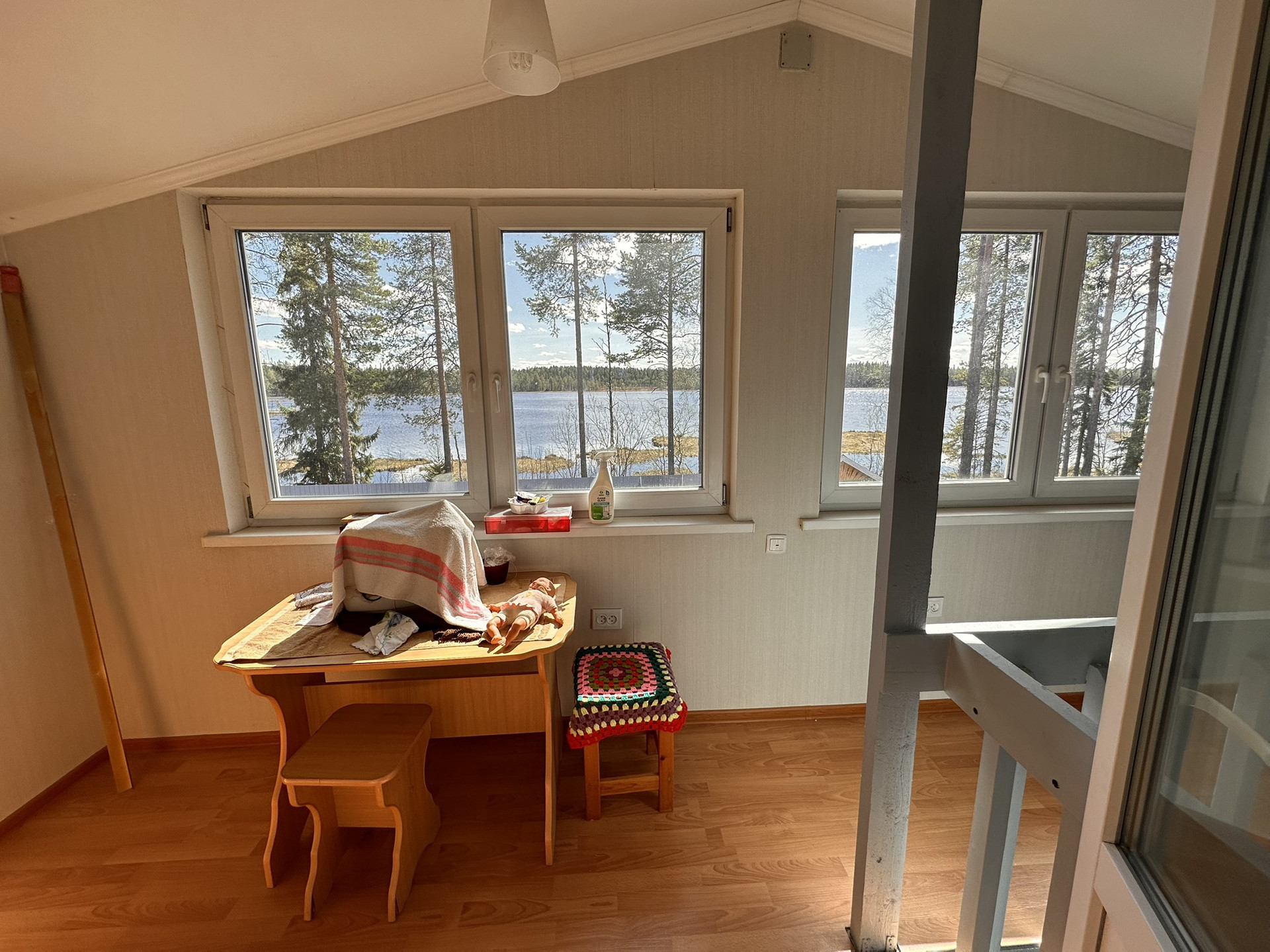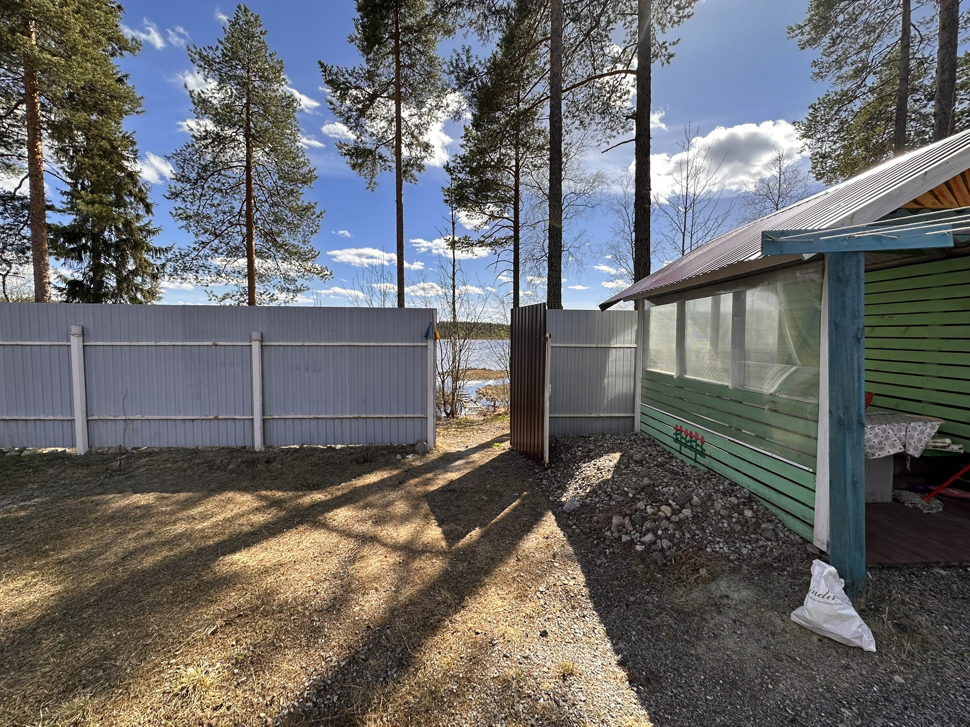 Дом находится на берегу небольшого озера, всесезонный, отапливается электричеством и печью. В коридоре сделан тёплый пол. Туалет, душевая кабина и сауна в доме.