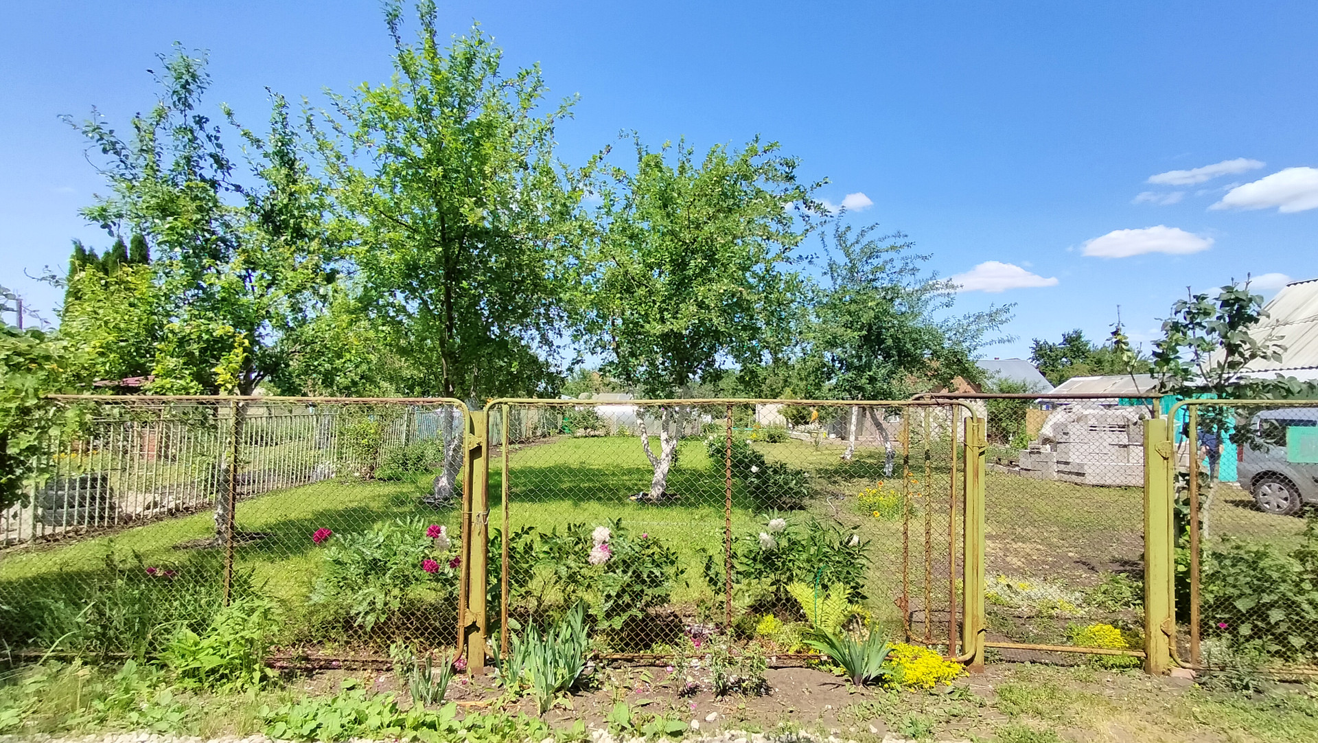 Из насаждений: яблони, слива, груша, смородина, малина, виноград, крыжовник, жимолость, клубника.