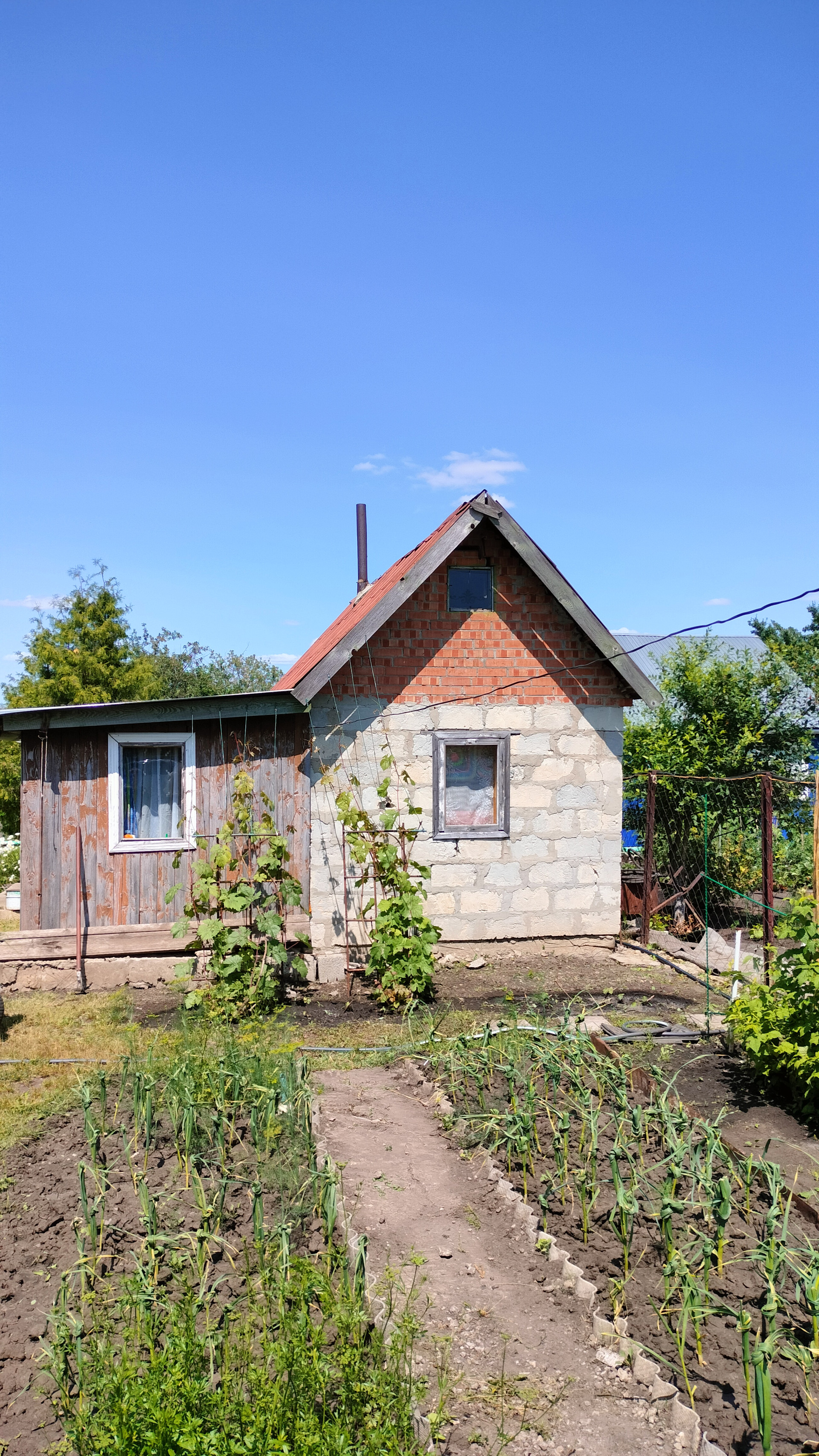 Есть кладовка цельнометаллическая, компостный ящик, 2 сливные ямы. Стоянка для 2х машин.
