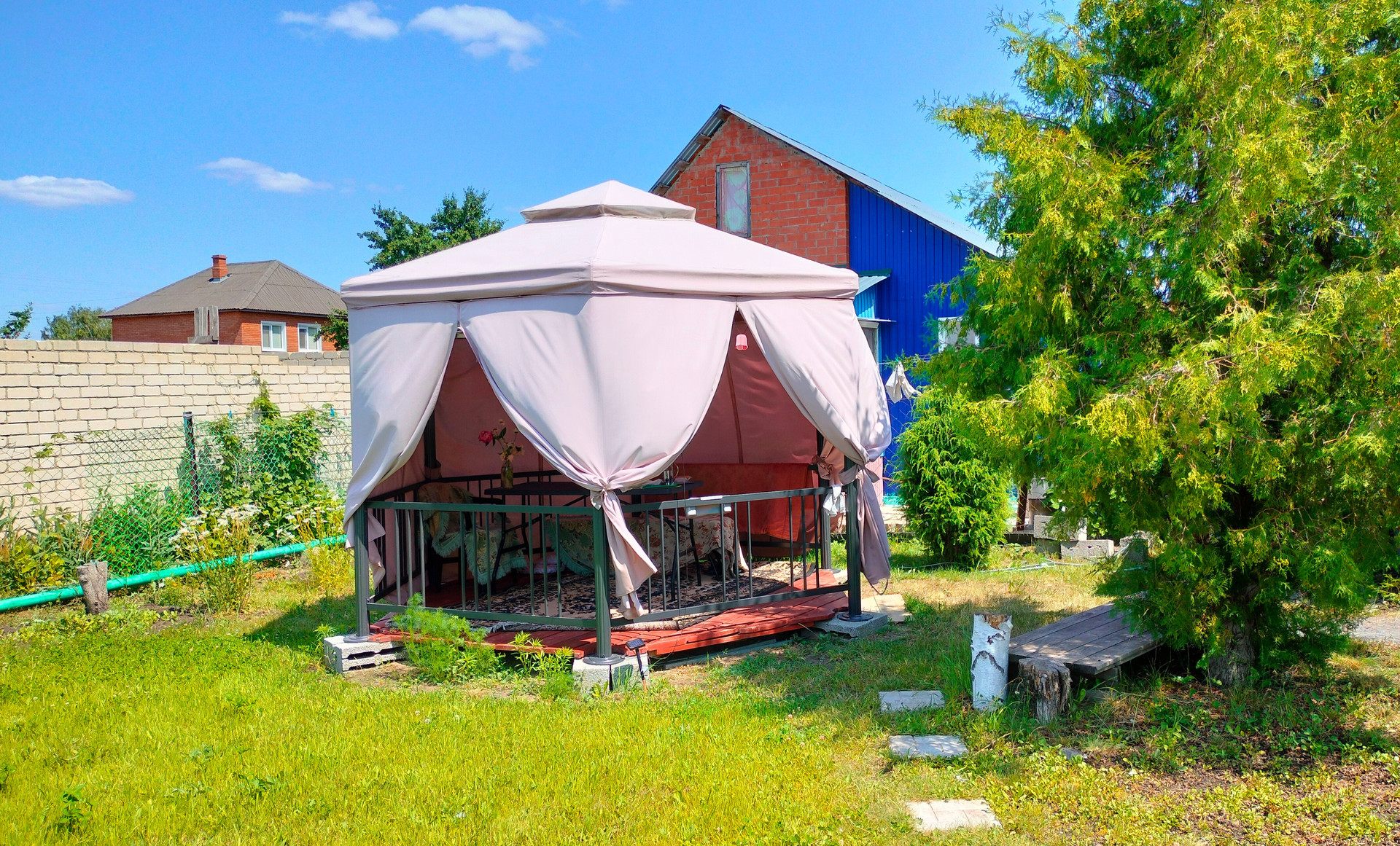 На участке: беседка, теплица, душ с подогревом воды, баня с комнатой отдыха. Есть пристрой к бане где можно остаться на ночь. В комнате установлены фильтры для очистки воды, кран с подогревом воды., газовый баллон для плитки.