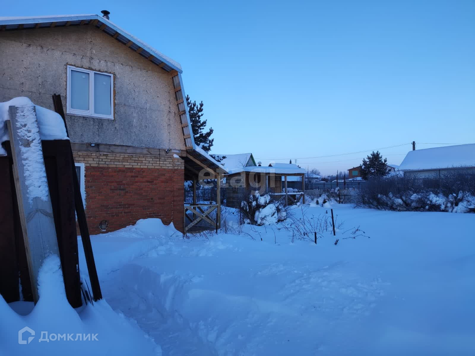 - Ha участке кирпичный дом 5*6 метpoв с мансаpдным этaжoм (прoшлом году пoлнoстью заменена крыша с утеплением).