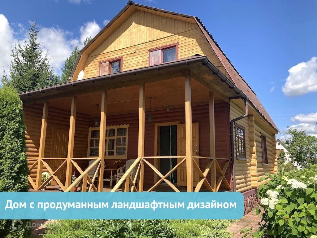 * параметры дома. Фундамент – ленточный-армированный. Материал стен дома – бревно (толщиной 30 сантиметров), с утеплением + каркасно-щитовая пристройка. Продуманная и функциональная планировка дома. Установлены качественные деревянные окна. Высота потолков на первом этаже 2.50 метров, на втором этаже – 2,15 метров. На первом этаже дома располагаются: веранда (21 м2), санузел, кухня, гостиная с камином. На втором этаже находятся: две спальни и холл. Использованы натуральные материалы и цвета в интерьере - это создает эффект свободного пространства, который можно выгодно оформить с помощью дополнительных деталей и обыграть на ваш вкус. Это делает проживание в доме более комфортным. Территория участка со своим продуманным ландшафтным дизайном! Рядом с домом располагаются: баня; зона для барбекю, где Вы сможете собраться всей семьей и отметить значимые мероприятия для каждого домочадца; зона отдыха с качелями. Озеленение участка несомненно привлекает внимание своим живописным видом: интересные сорта растений, расположение которых продумано до мелочей; деревья; кустарники; цветы.