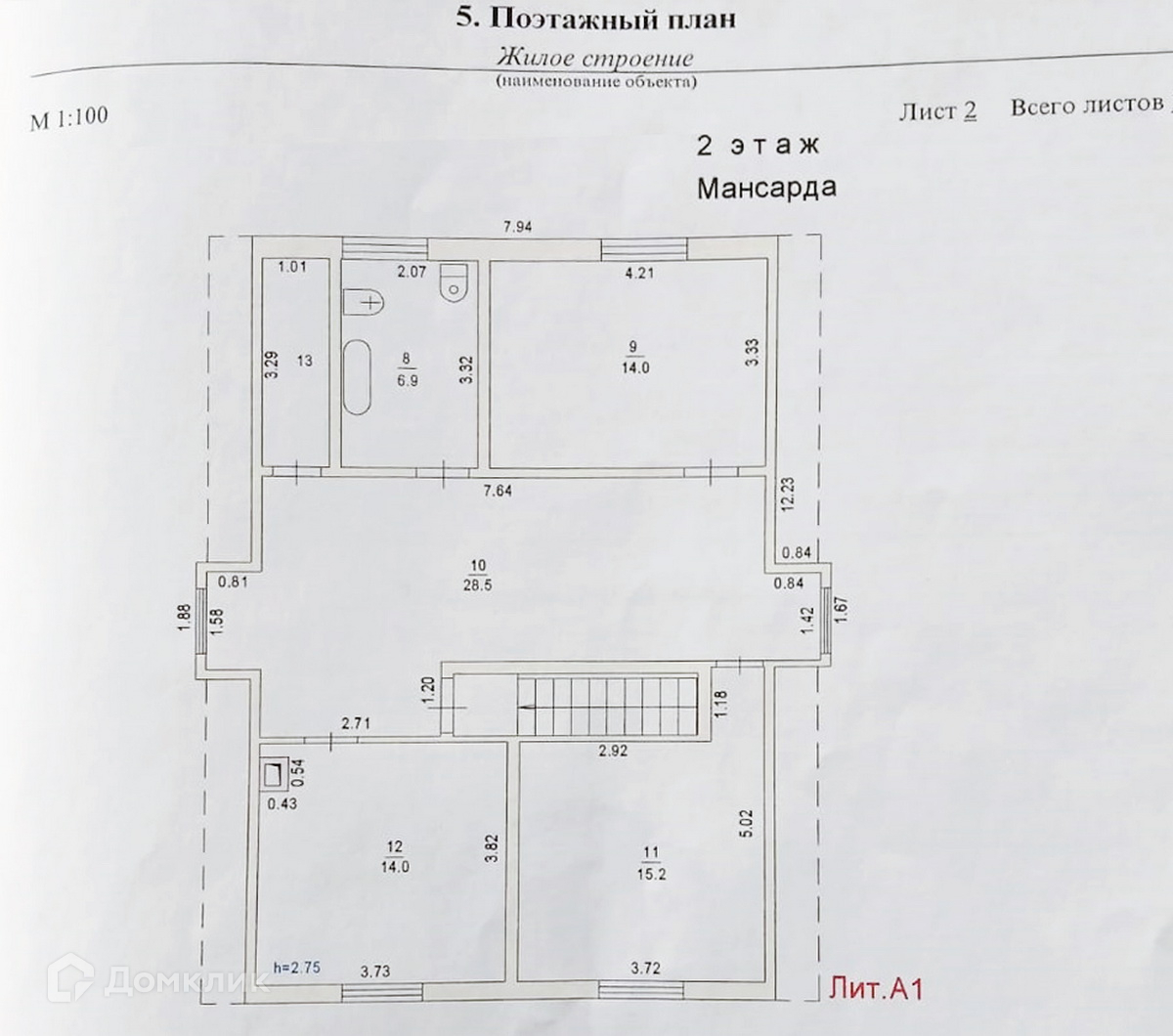 2 этаж: три спальни 15,2 м² + 14,0 м² + 14,0 м², санузел 6,9 м² с ванной, гостиная 28,5 м².
