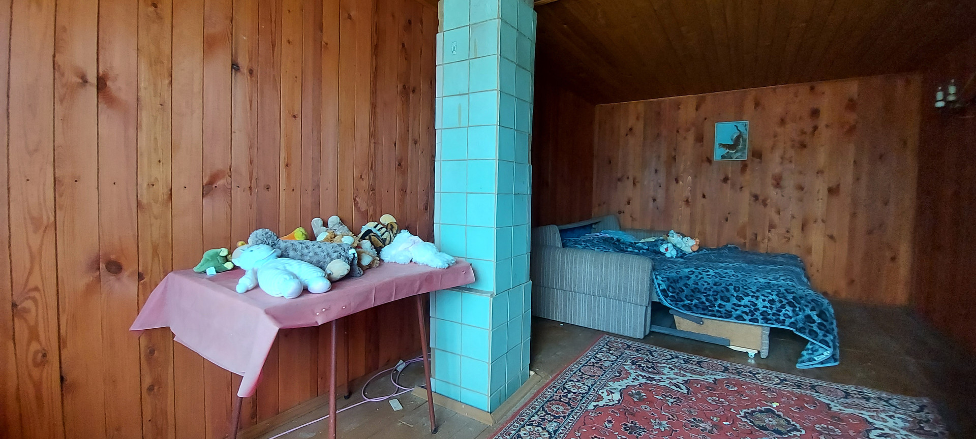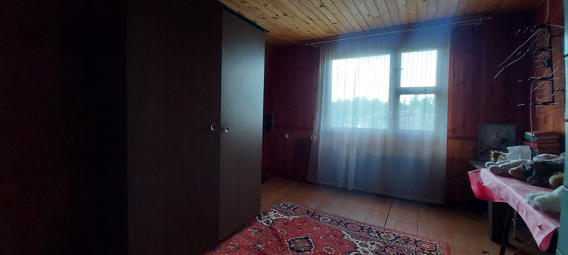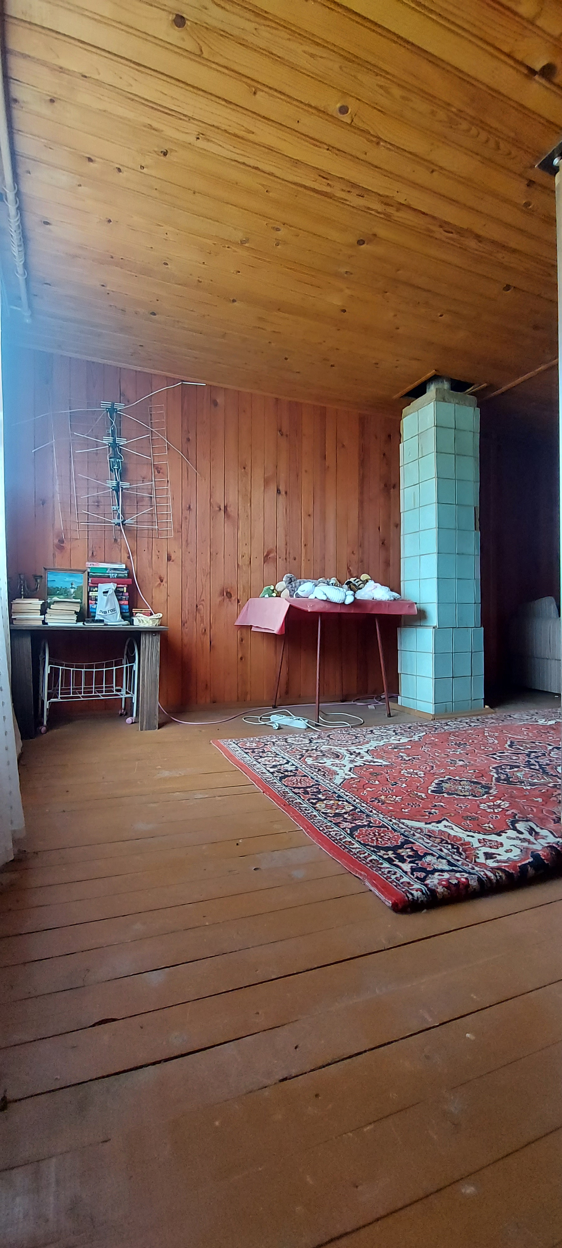 -просторная комната без разграничения зон (в комнате проходит печная труба с первого этажа на крышу, согревая комнату)