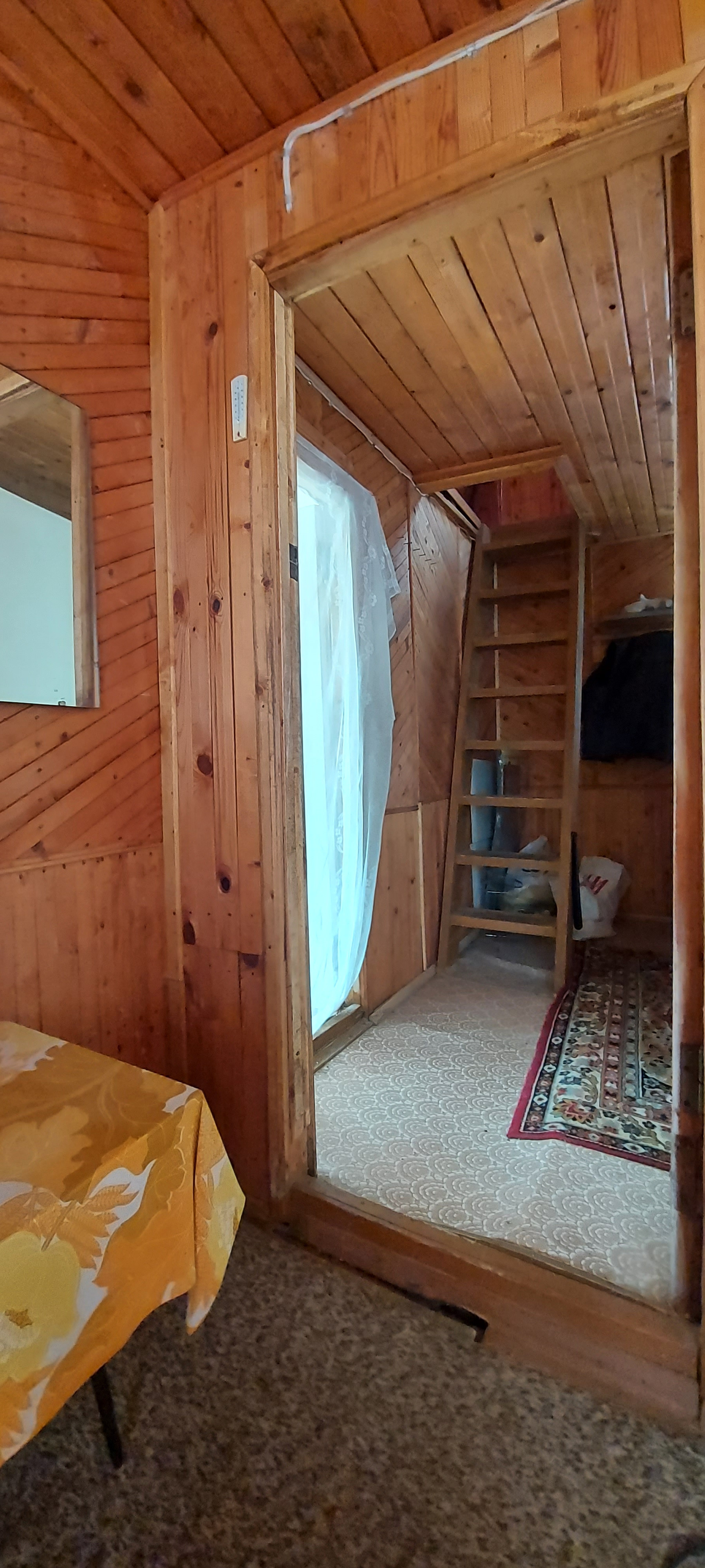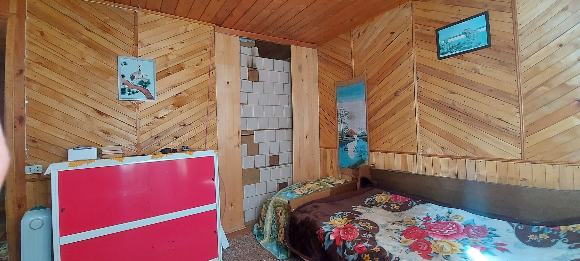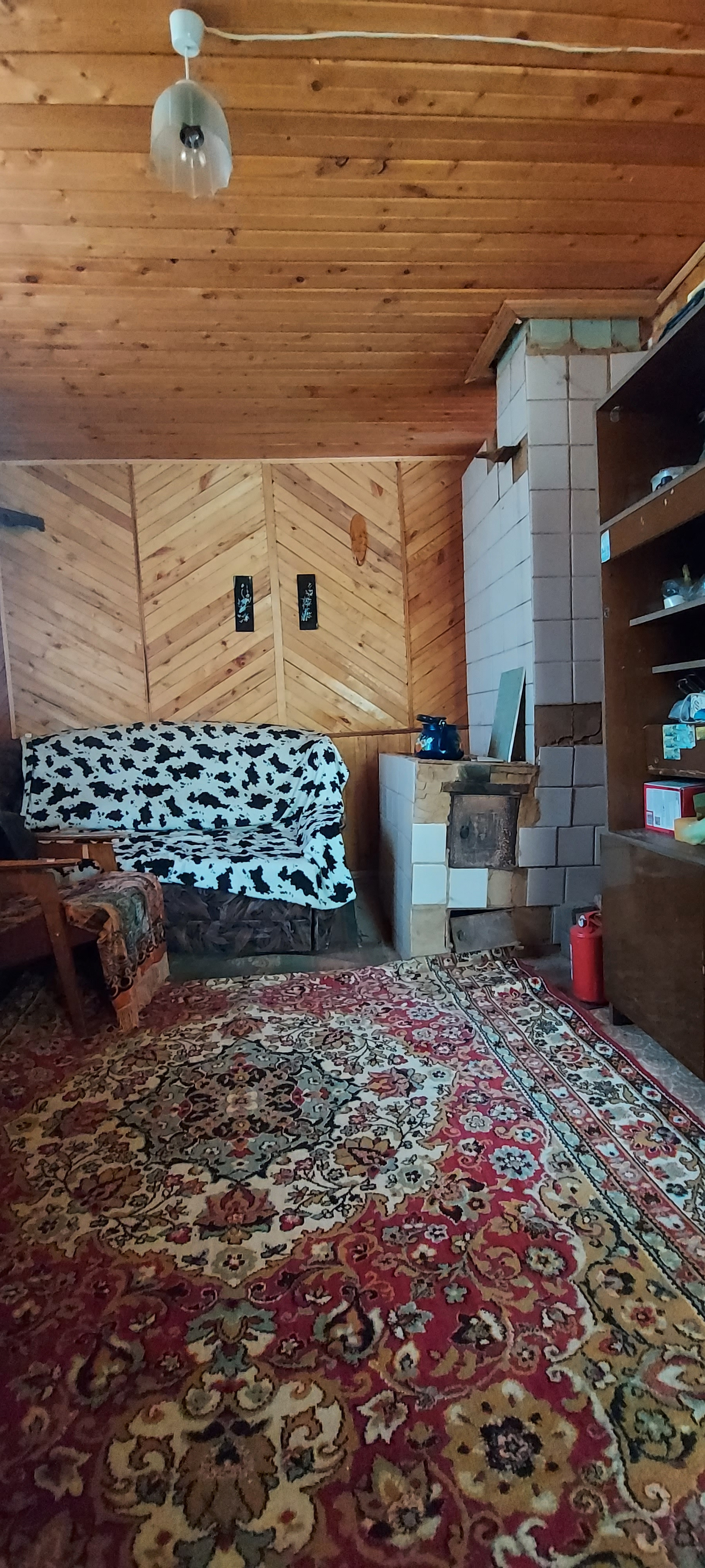 -просторная комната без разграничения зон (в комнате проходит печная труба с первого этажа на крышу, согревая комнату)
