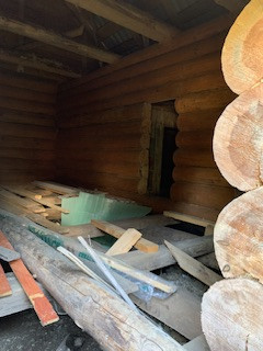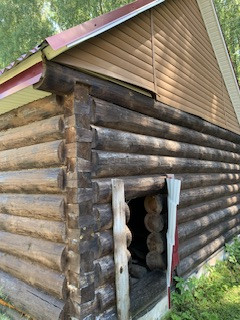 На участке стоит сруб под баню площадью 30 кВ.м.