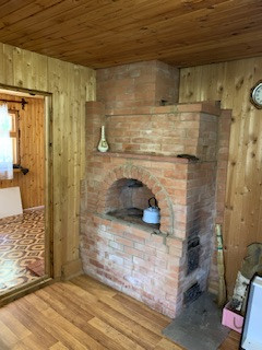 Вода в дом проведена из колодца с участка (глубина 5 колец), стоит водонагреватель, то есть в доме горячая и холодная вода. Газовая плита.