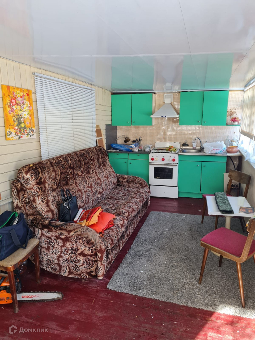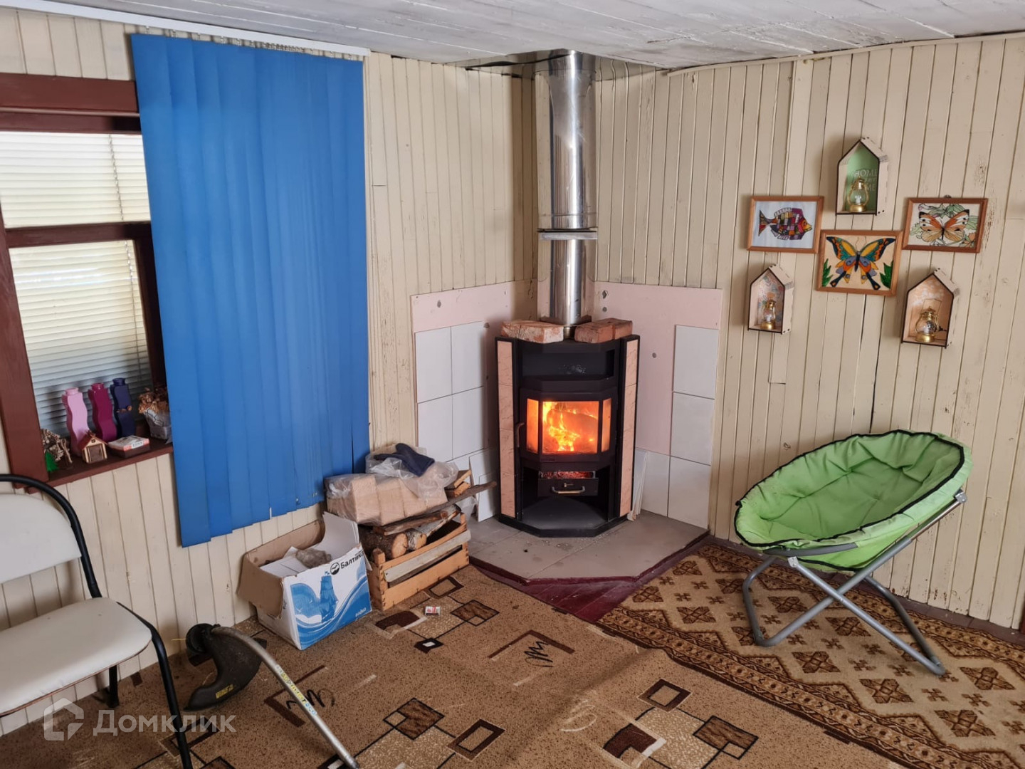 В продаже небольшой дом с двумя комнатами. Первая комната - веранда-кухня. Вторая комната - небольшая спальня с камином. Камин обогревает комнату за 10 минут . Уже практически подведен свет (раньше света не было) , установлен столб- ждём подключения..
