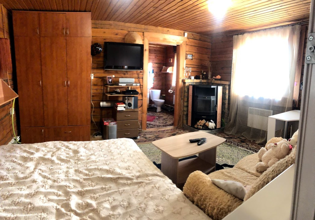 На участке 2 дома. 1-Гостевой 45кв., деревянный, утепленный , для зимнего проживания, камин и радиаторы обогревают дом. Кухня и зал отдельно, санузел в доме, есть душевая кабина, летний водопровод, но можно подключиться к ЦВС. Зимой есть доставка воды, заливать в кубы(3 куба, все подключено). ТВ WiFi все работает при подключении. Летняя веранда-беседка просторная между домами-очень удобно.