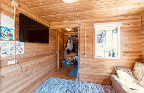 Баня: 2,5 на 5 метра + терраса 1,5 на 5 метров. фундамент - сваи. Каркасная технология. Материал лиственница. Беседка: 4 на 4 метра. Свет, вода (холодная/горячая) проведены. Хоз. Блок - металлический контейнер. Мастерская/хоз.блок: каркасная технология, утеплена 100 мм.