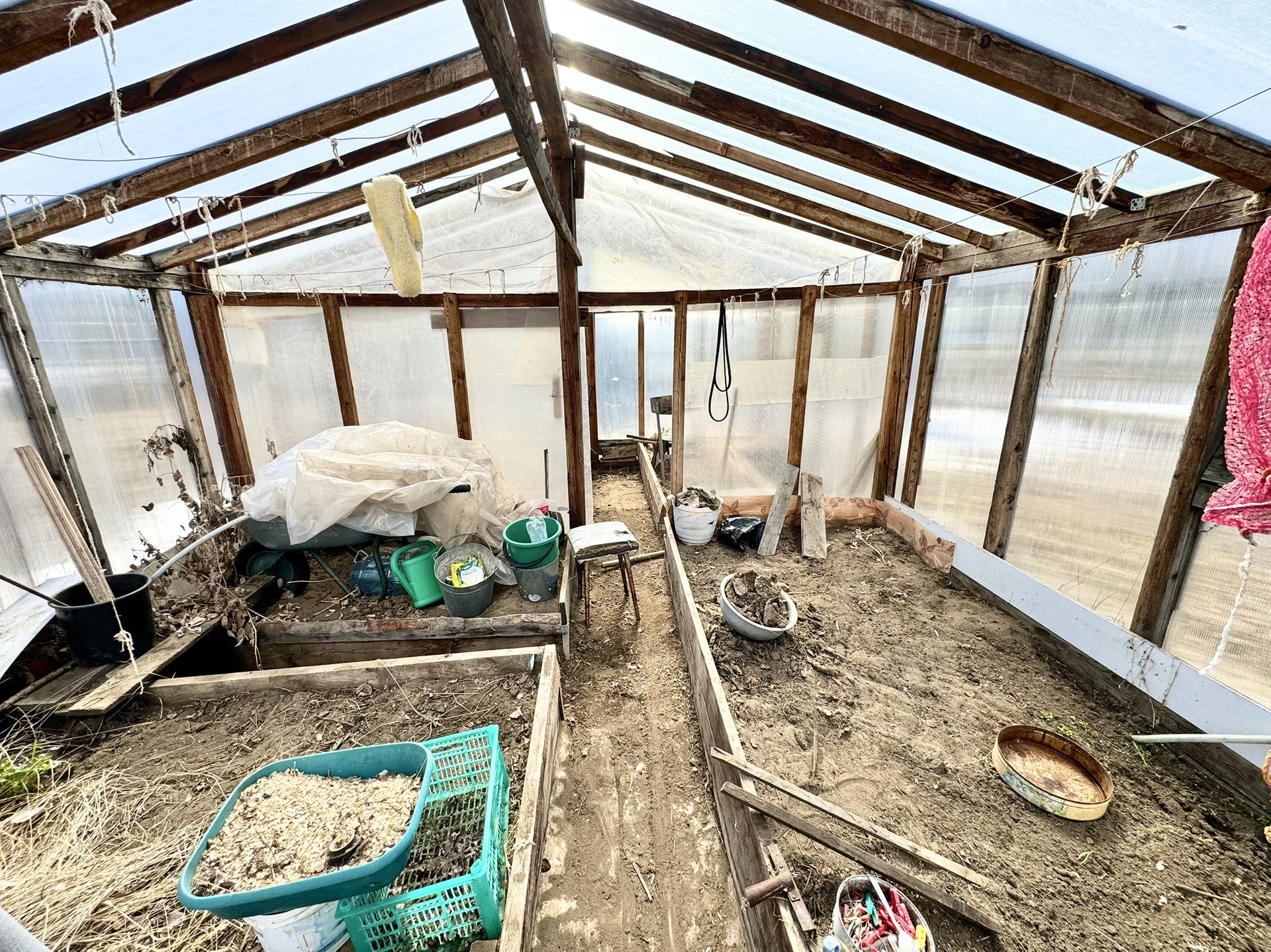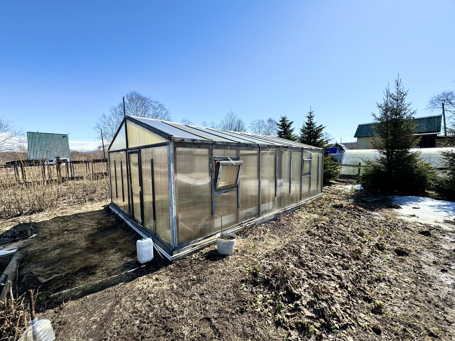 Теплица разделена на 2 секции, вместительная и удобная.