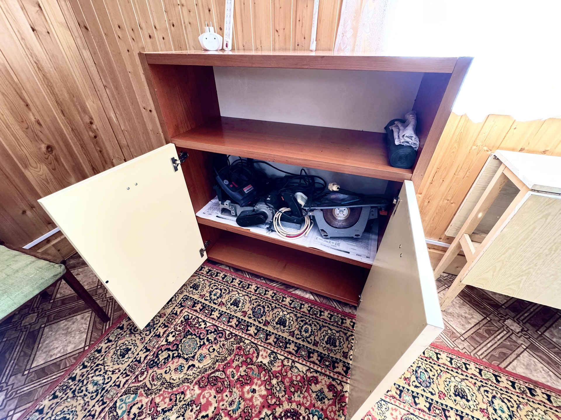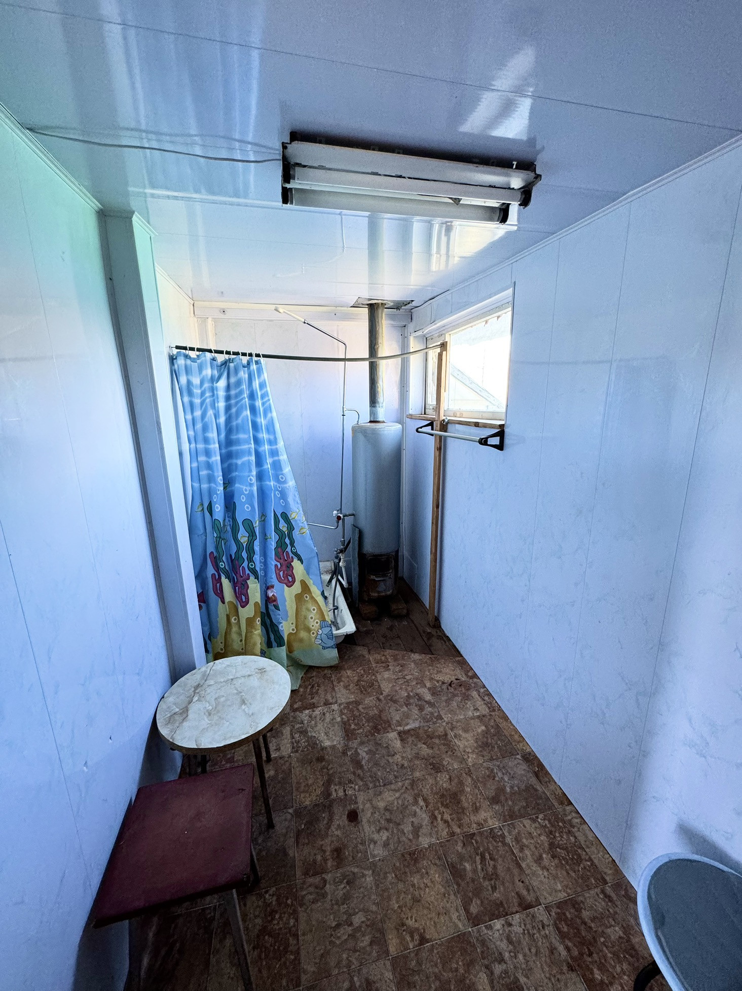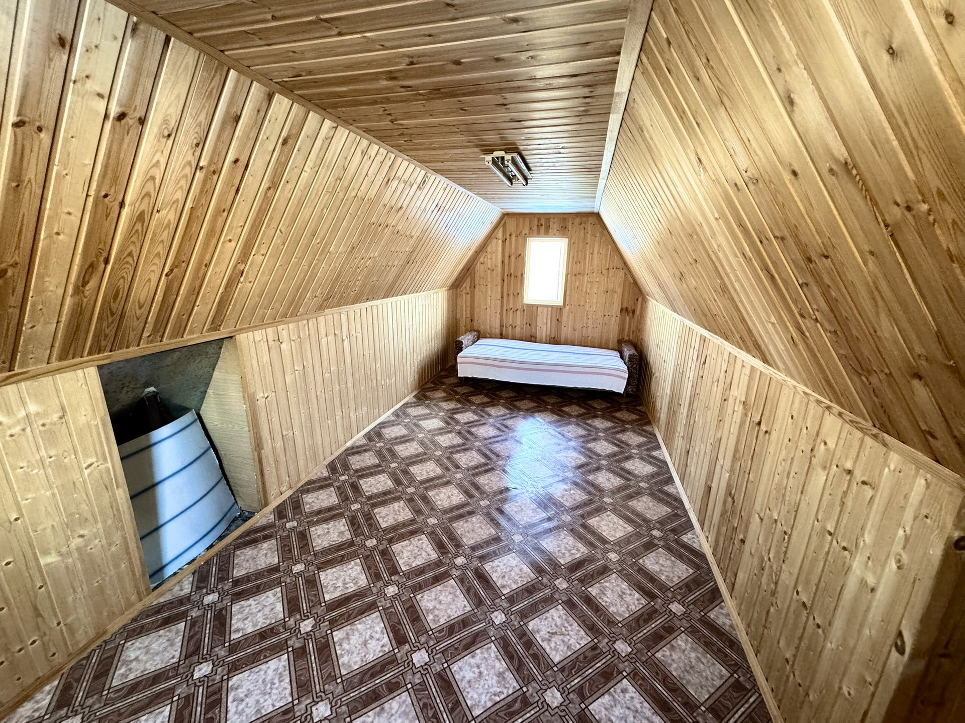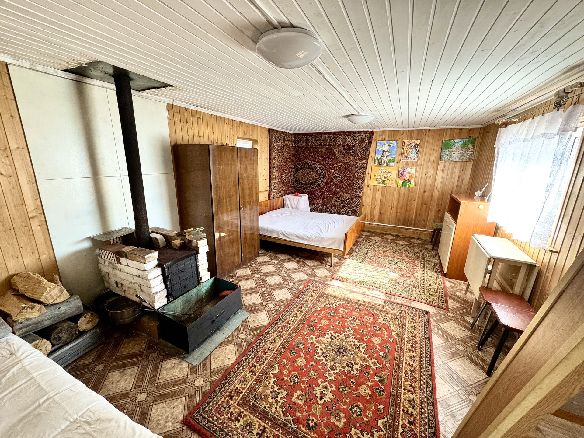Дом из брус, фундамент железобетонные сваи, утеплен менватой и обшит корейским сайдингом, внутри отделка - вагонка. Отопление печное. Есть душевая в доме, а также бойлер, вода по сезону, заведена в дом и на участок. Пластиковые окна. Полы деревянные (фанера + линолеум). Электричество круглый год, заменена вся проводка, новый электрический счетчик. Есть септик, бочка 400 литров. Вся мебель и техника остается. Есть мастерская, остаются инструменты.