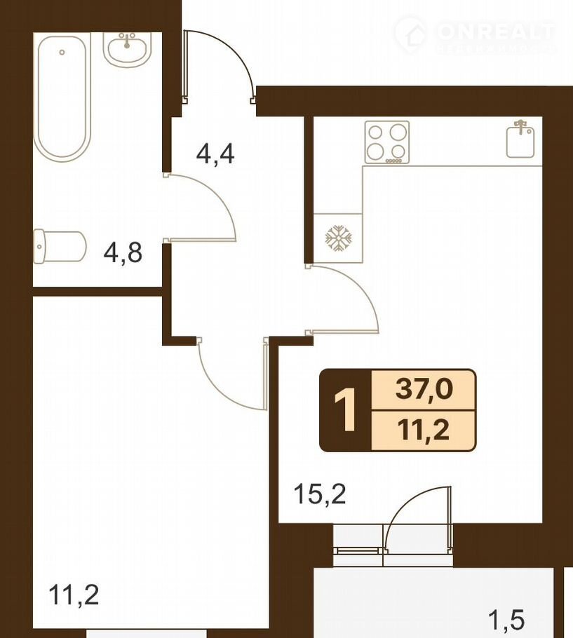 Общая площадь 37 м2