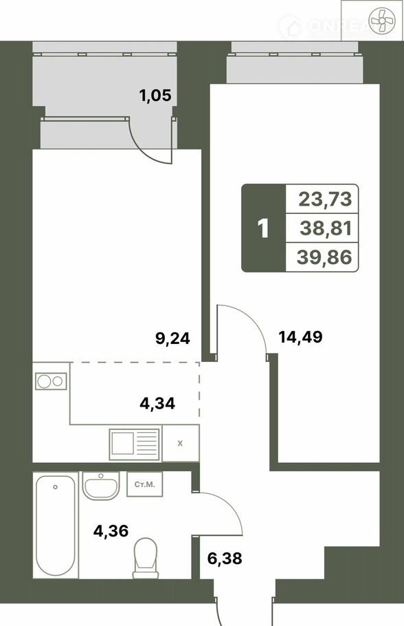 Общая площадь 39.9 м2