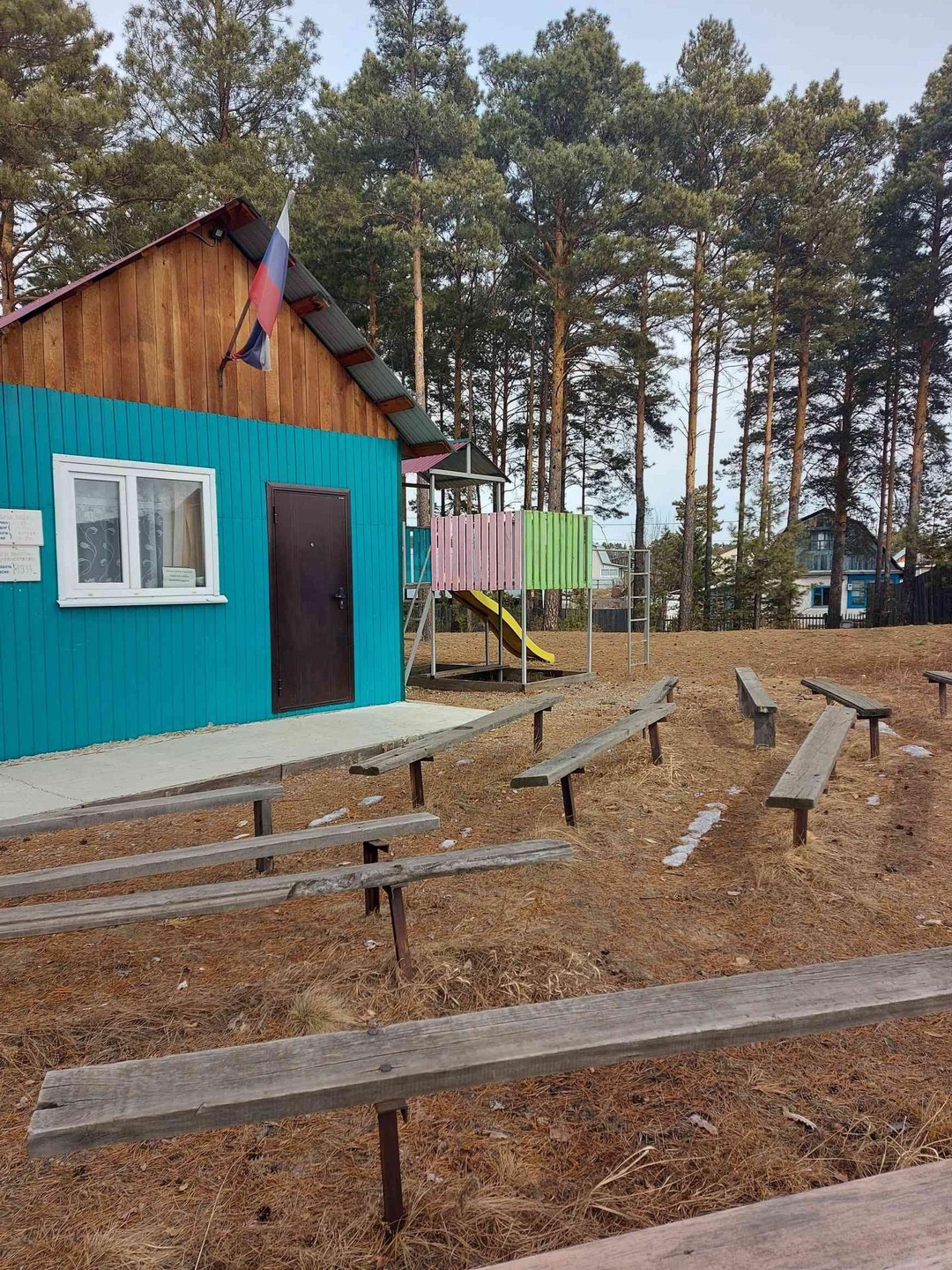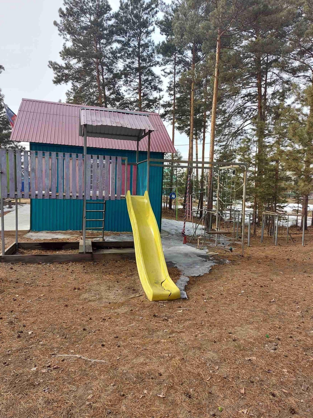 В шаговой доступности есть детская площадка: горка, волейбольная сетка, стол для тенниса, скамейки для общения.
