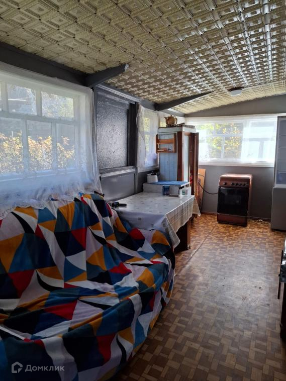 - одноэтажный дом из бруса (веранда, кухня, спальня и гостиная), добротная печь, позволяющая жить зимой,