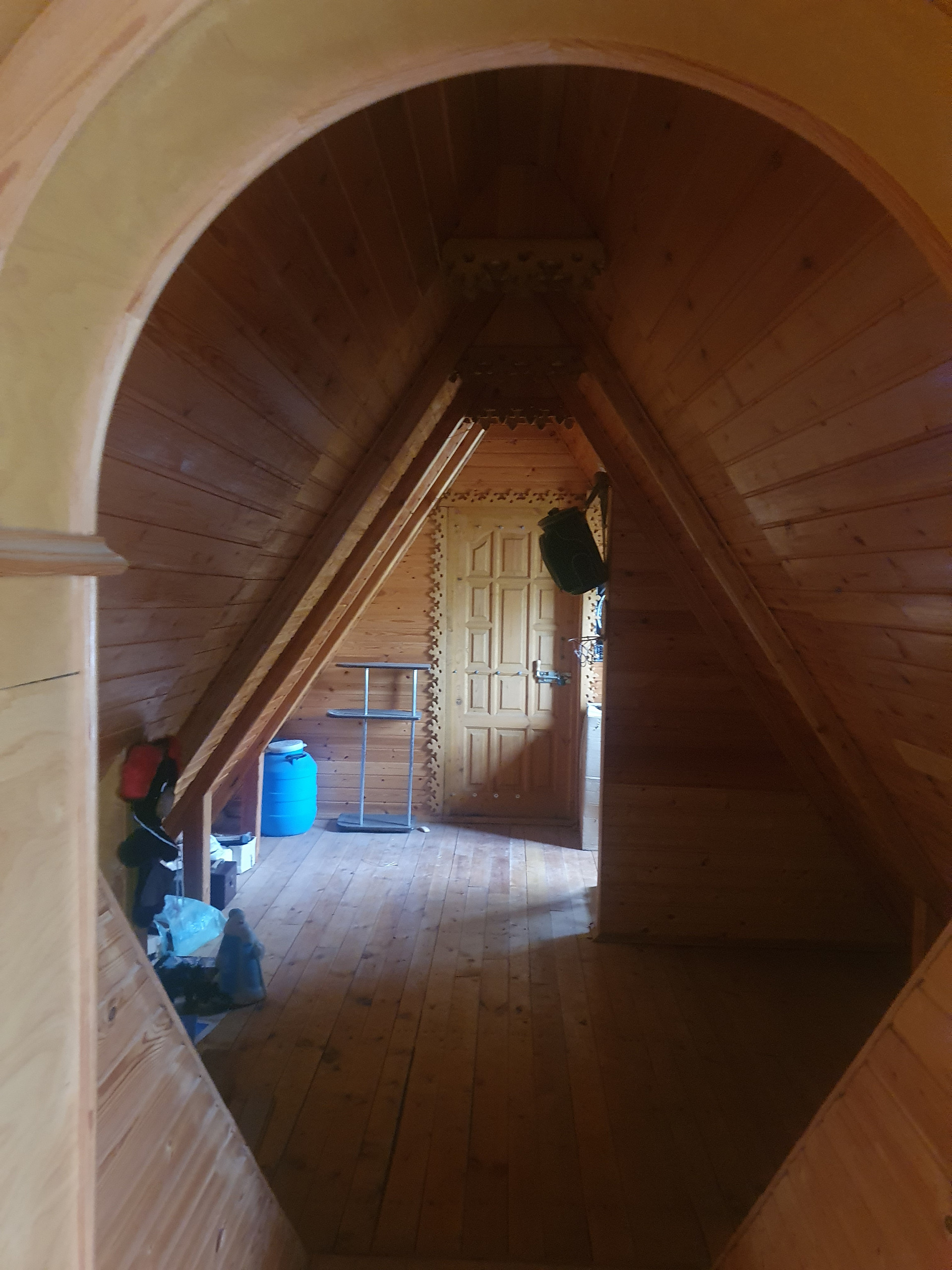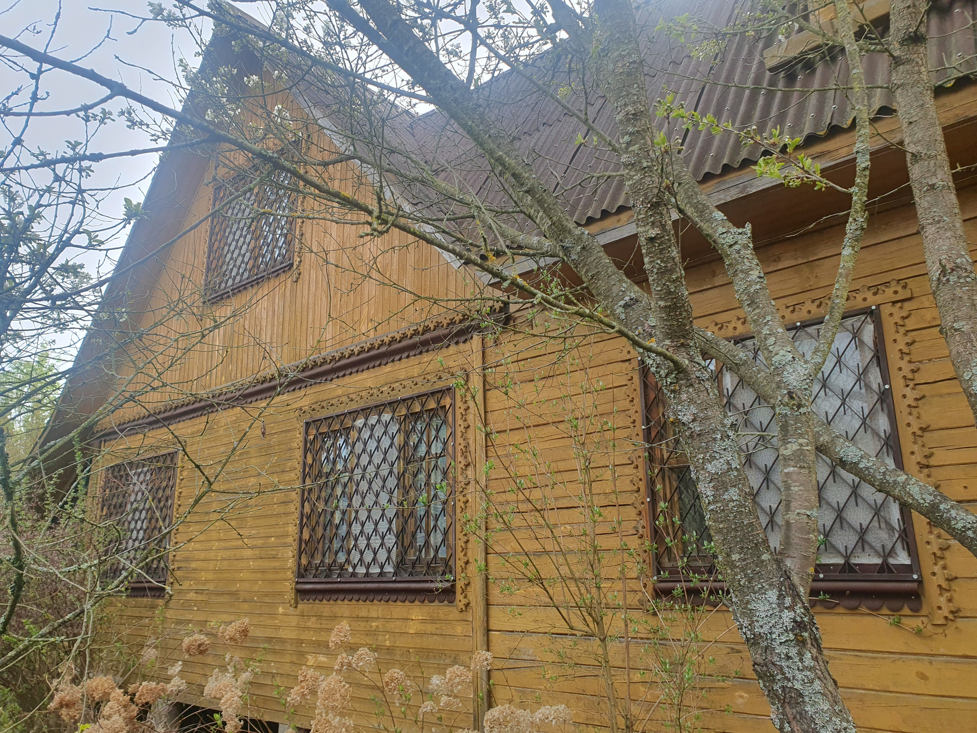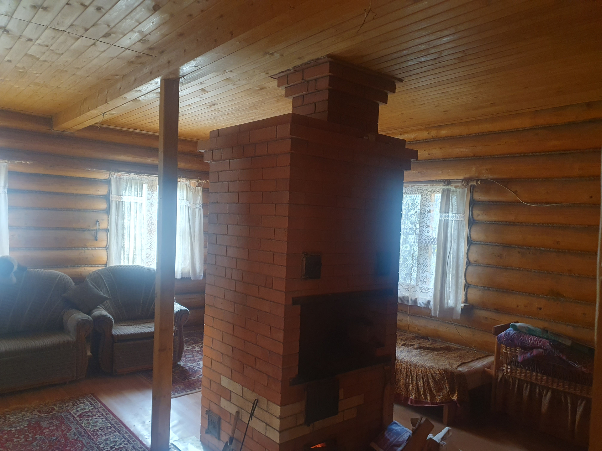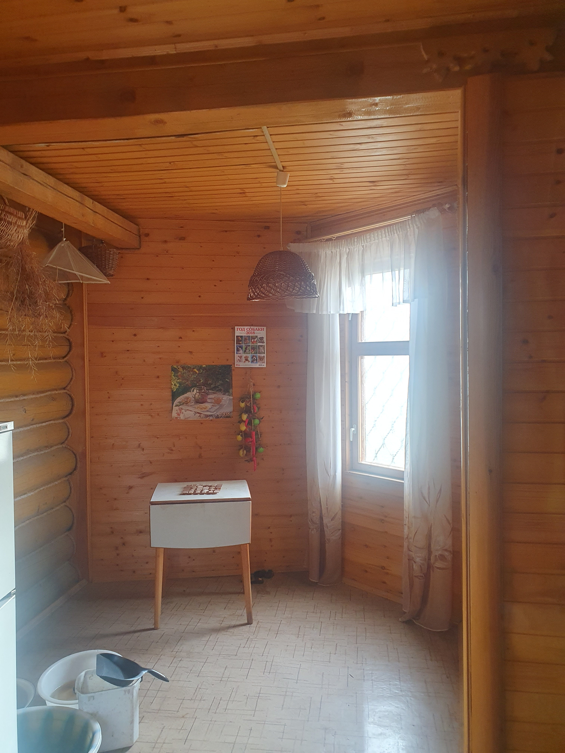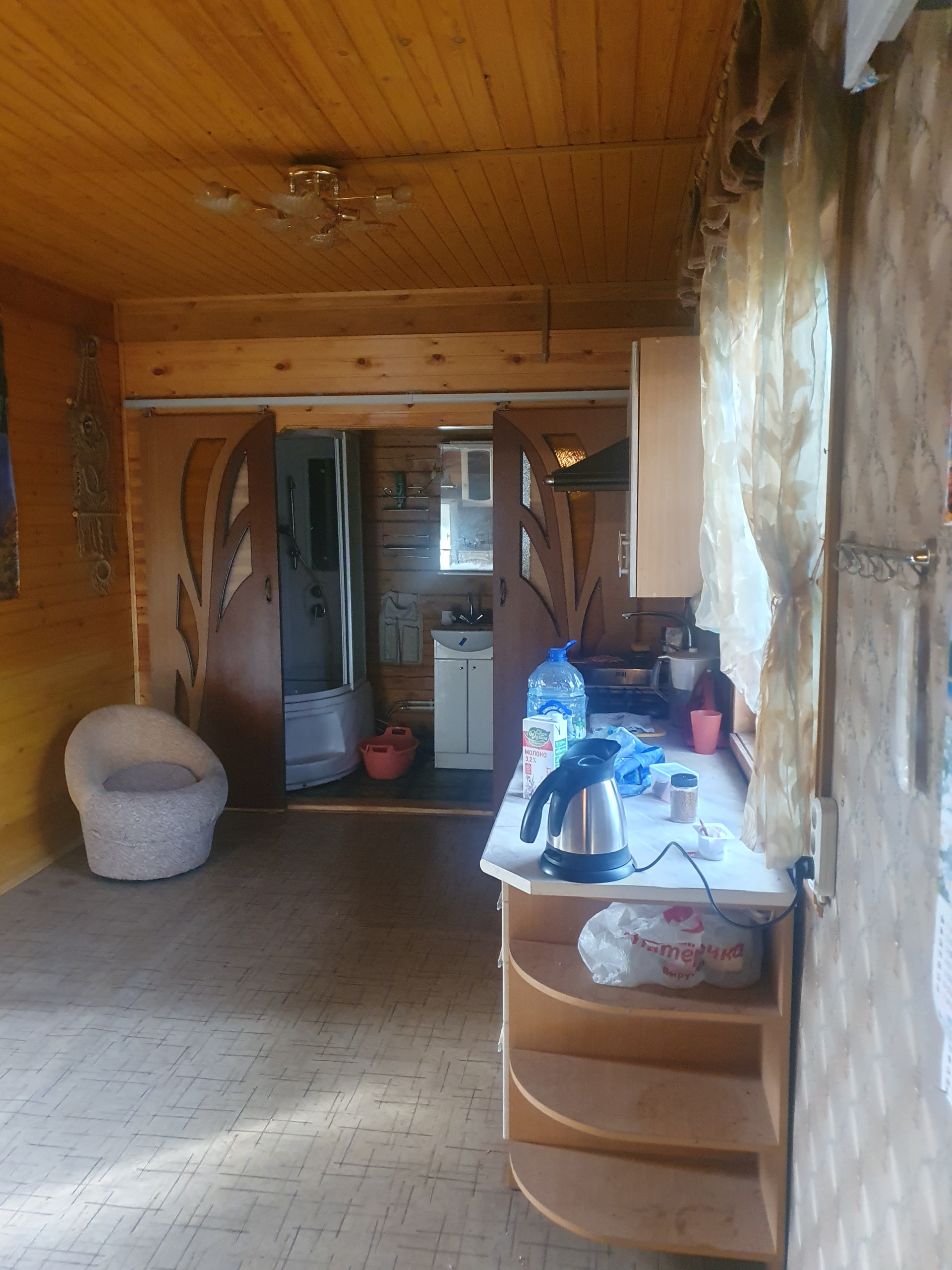 Дом двухэтажный с балконом. Основная комната (с русской печкой) и прихожая-из бревна. Пристройка (кухня и санузел) из бруса. На участке металлический вагончик (можно использовать как сарай). Скважина. Водопровод летний. 3 колодца-отстойника с дренажом (один из туалета, два других-душ и раковины). Санузел на первом этаже.