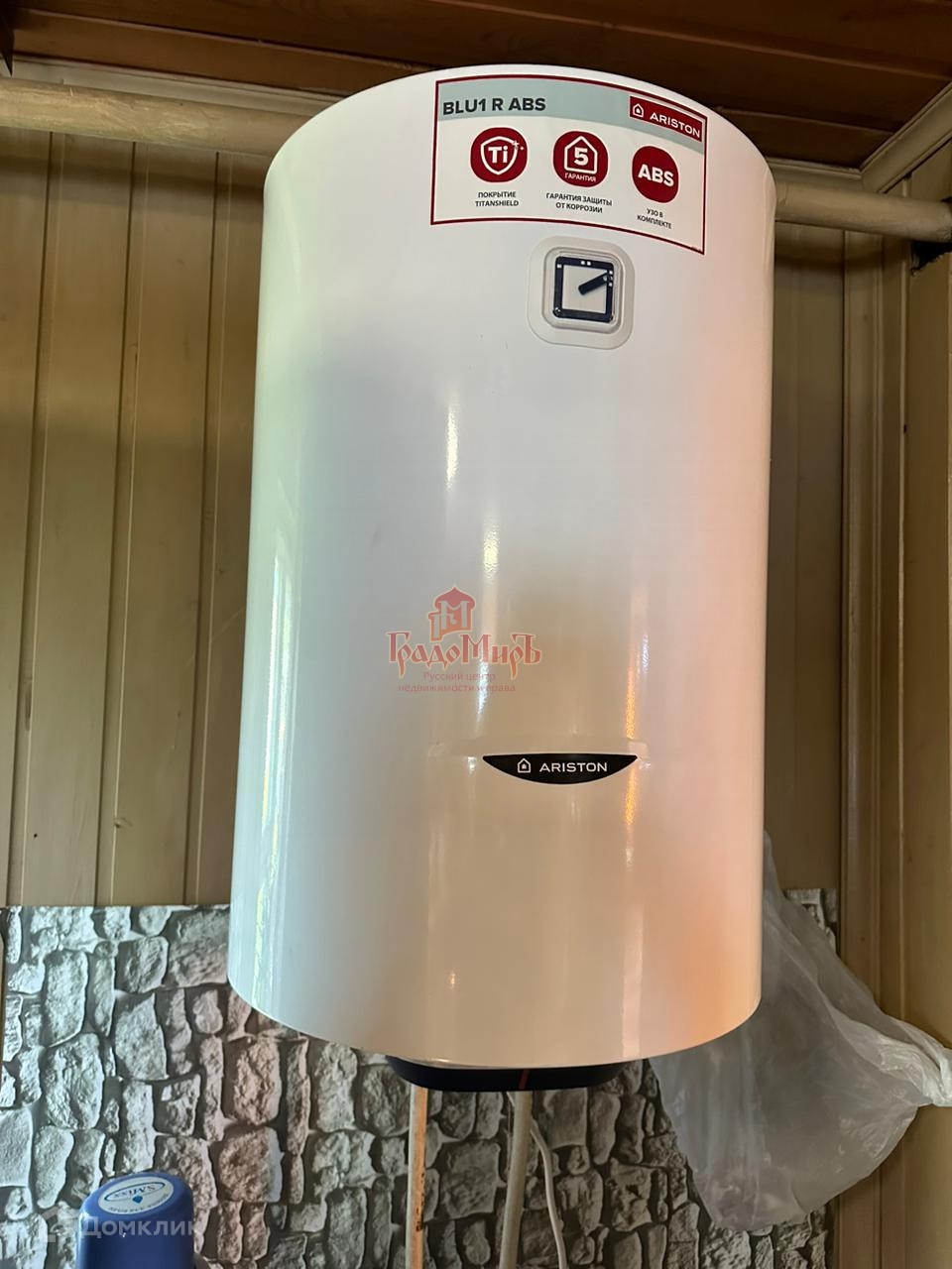 Первый этаж оборудован под гаражное помещение и баню с твердотопливным котлом (отапливает первый и второй этажи).