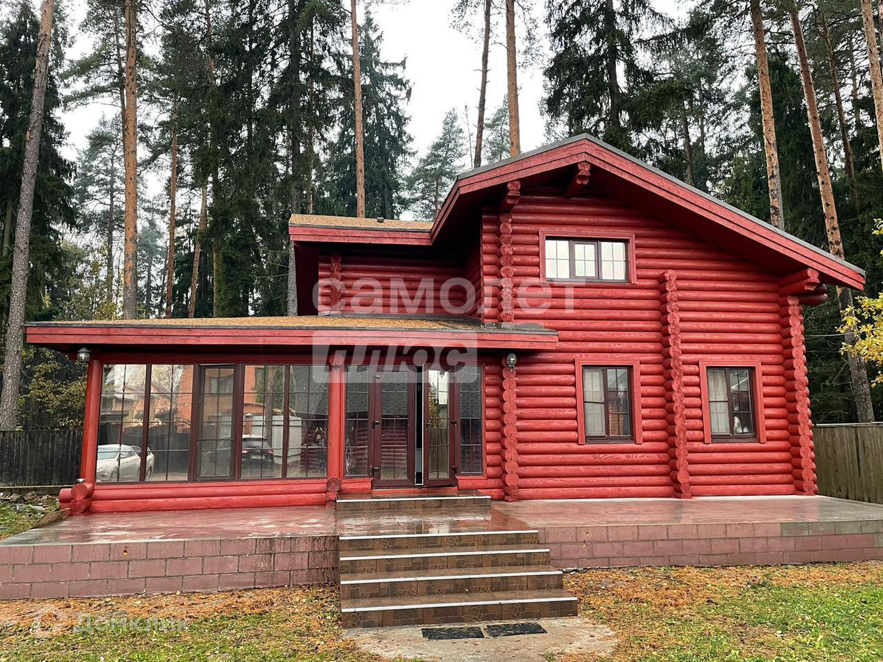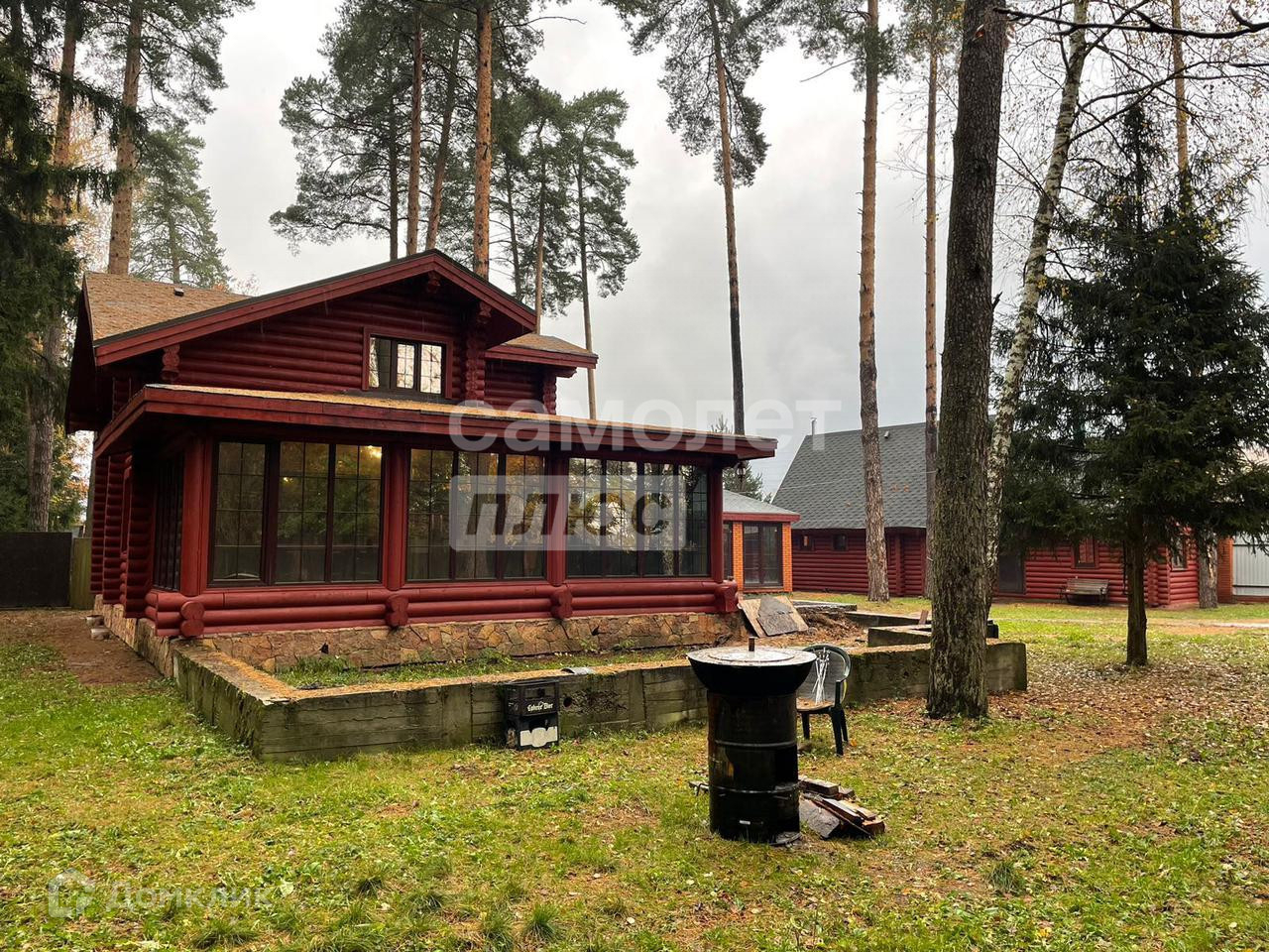 Двухэтажный бревенчатый дом, с надежной конструкцией.