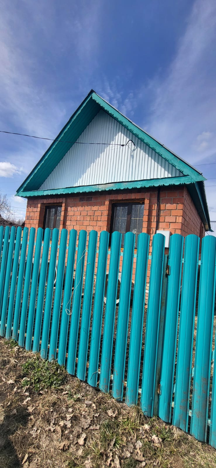 Дом около 60м2, полнотелый красный кирпич, стены с кладкой в два кирпича - тепло зимой и прохладно летом. Имеется хозяйственный блок для хранения инвентаря и т. д.