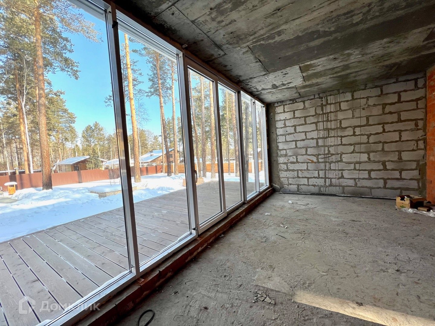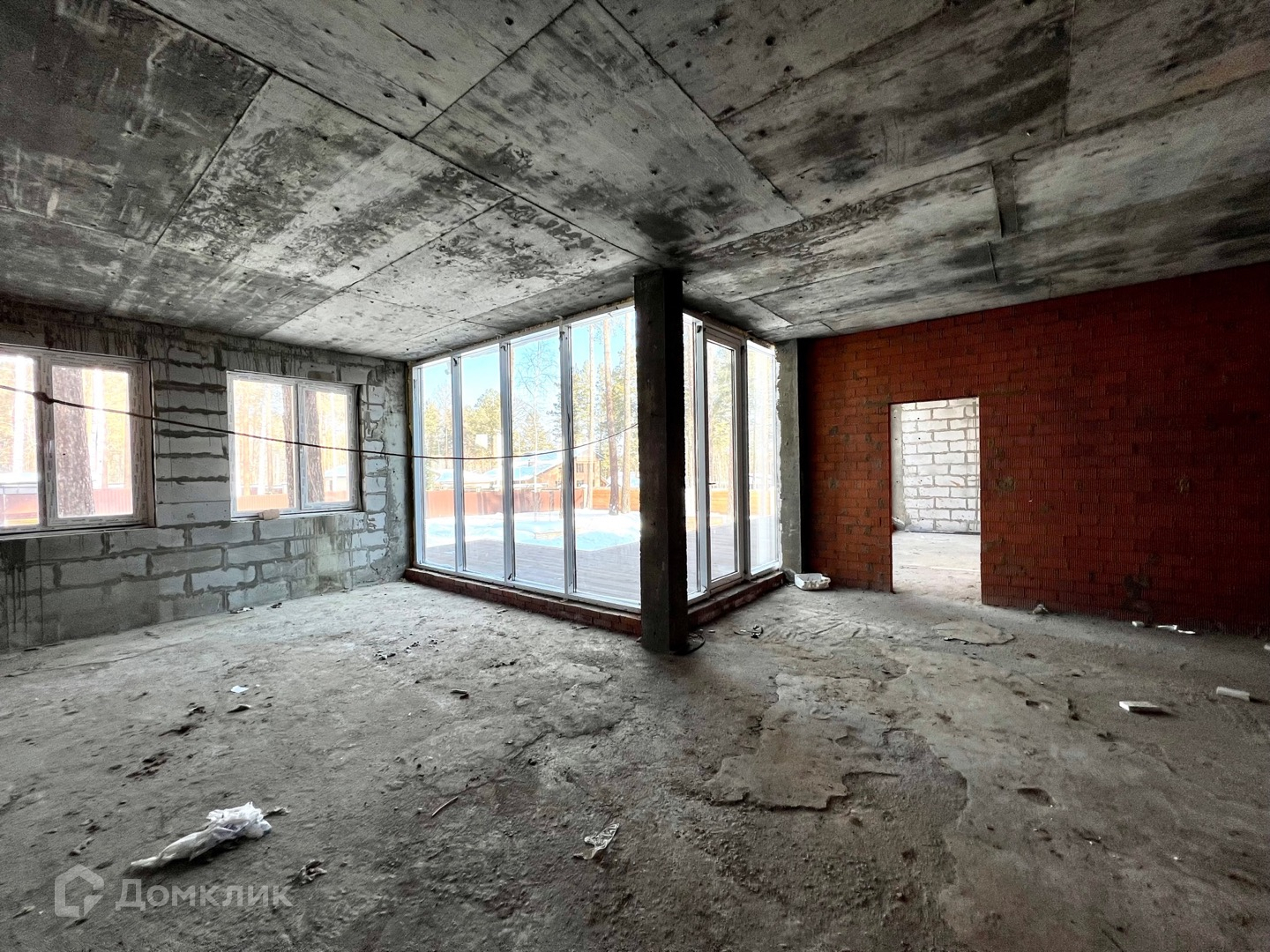Дом- монолитный каркас, заполнение газобетон + кирпич.