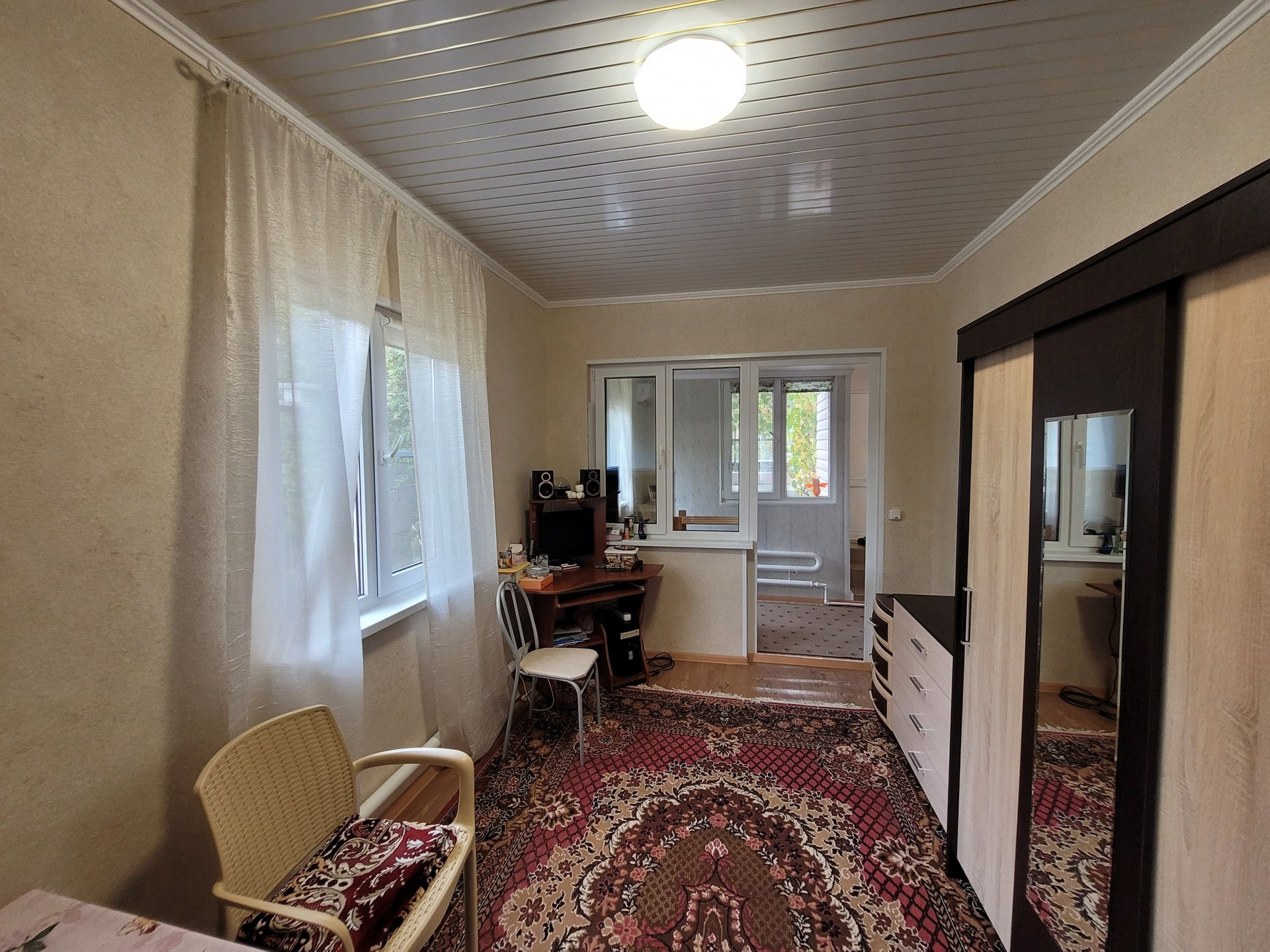 Дом 2016 года постройки, жилой по статусу, с пропиской, 77 кв.м. Построен из СИП-панелей, держит тепло, как термос. Летом хорошо проветривается, так как много окон и несколько входных групп в доме.