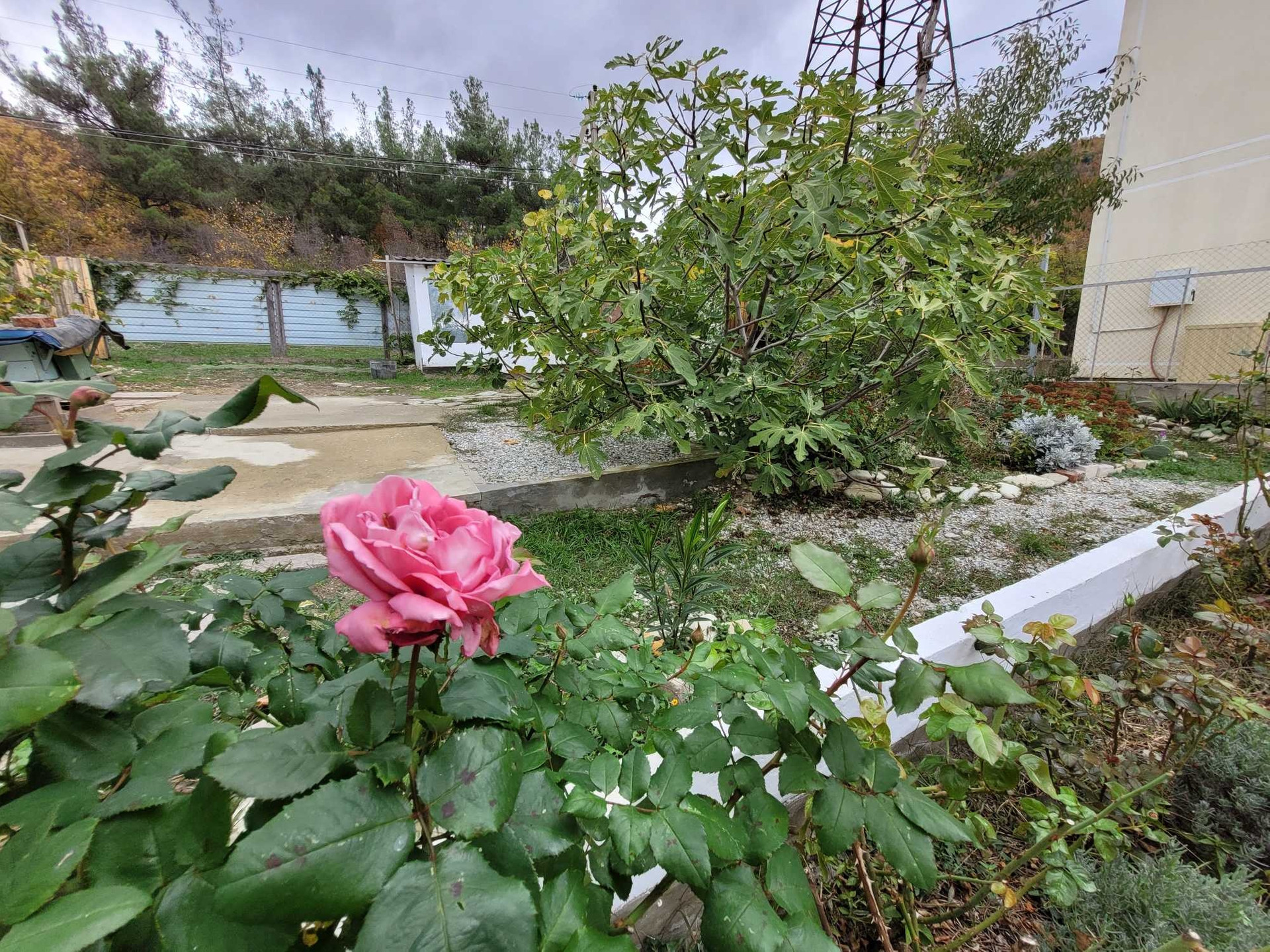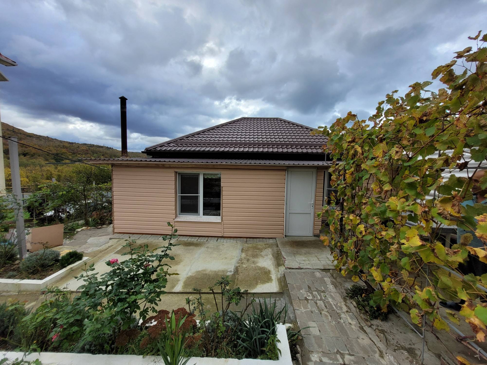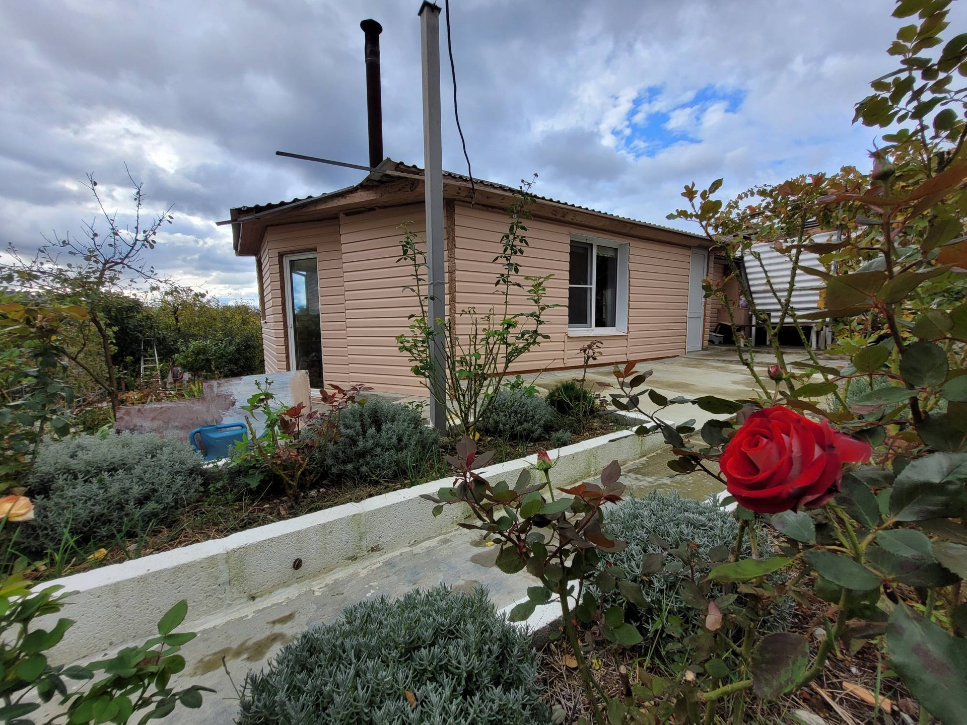 Сад плодоносящий ухоженный, несколько сортов винограда, цветники, розарий, есть подсобные помещения.