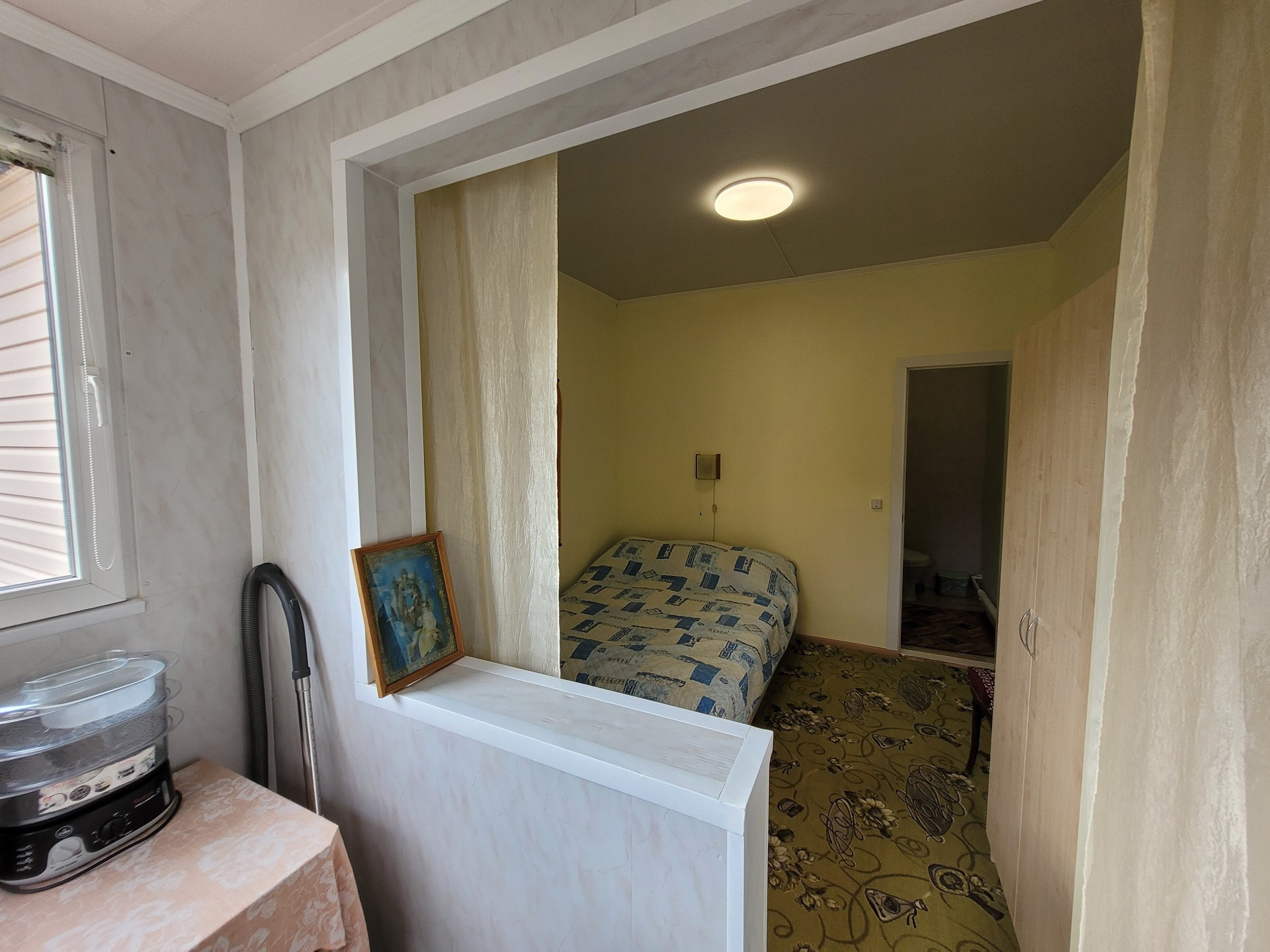 Пространство организовано так, что одна комната имеет отдельный вход и свой санузел, из кухни имеются выходы в сад.