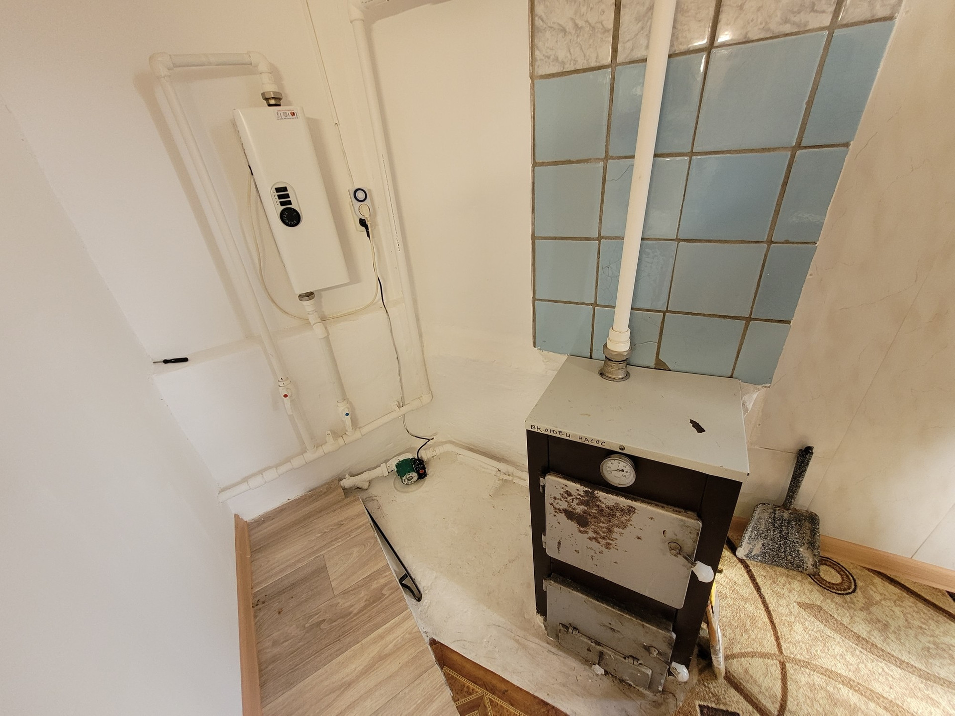 Отопление организовано так, что позволяет комбинировать несколько вариантов: есть электрокотел, есть дровяная печь, еще есть один инфракрасный обогреватель. Магистраль газа идёт прямо перед воротами дома, при желании можно провести в дом. На данный момент нас устраивает имеющаяся система, она экономичная и в доме тепло, живём круглый год.