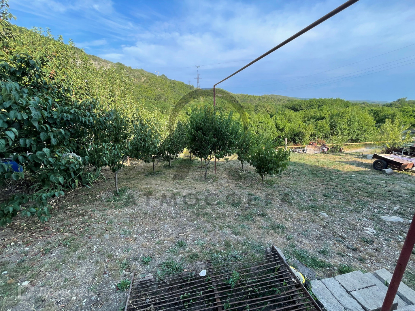 Вид из дома на лес и ущелье без отвлекающих взор строений. Сам участок без существенного уклона с подпорной стеной по нижней границе.