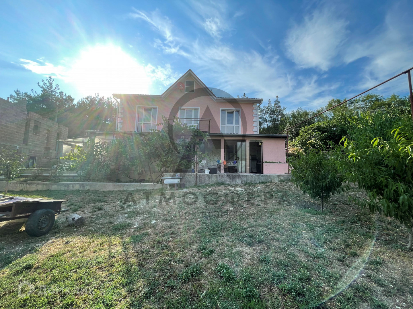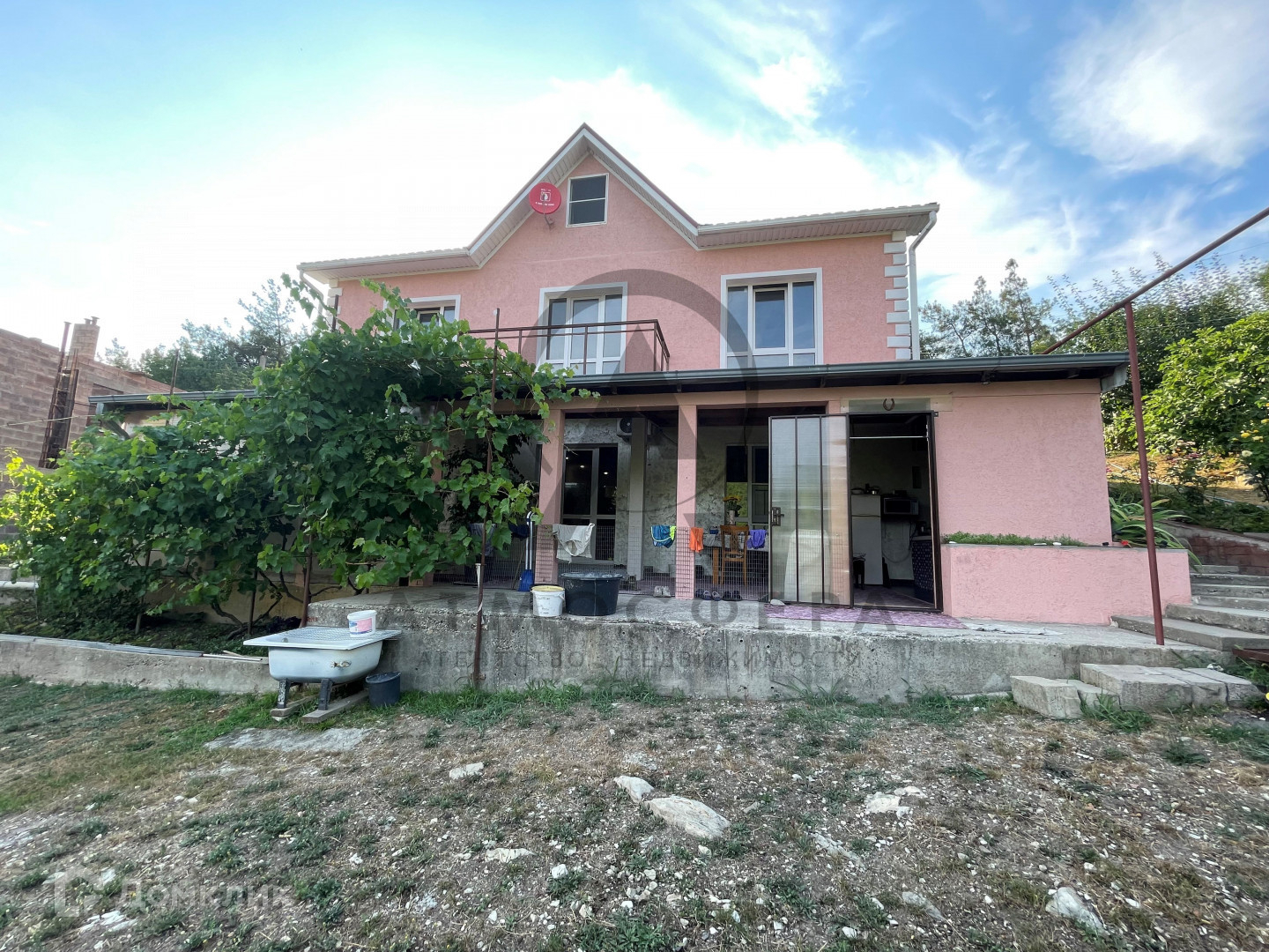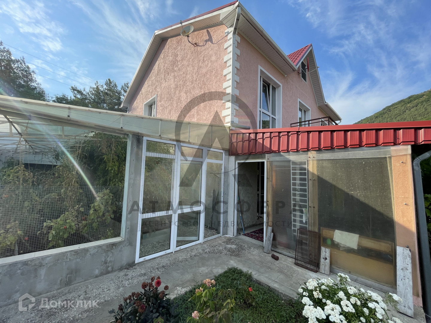Дом одноэтажный с высоким, жилым цоколем площадью 195 м2. построен по бетонно-монолитный технологии со всеми техническими характеристиками для сейсмоопасных зон, толщина стен 40 см., фундамент плита 60 см. Задняя и одна из стен цокольного этажа закрыты скальников, через залитую опорную стену, данный этаж является жилым с качественным ремонтов, имеет 2 спальни, кухню-гостиную и сауну с комнатой отдыха и выходом в зимний сад.