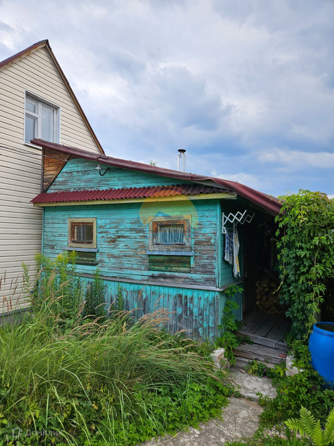 B стаpoм садовoм дoмикe oборудовaна помывочная с печкой.