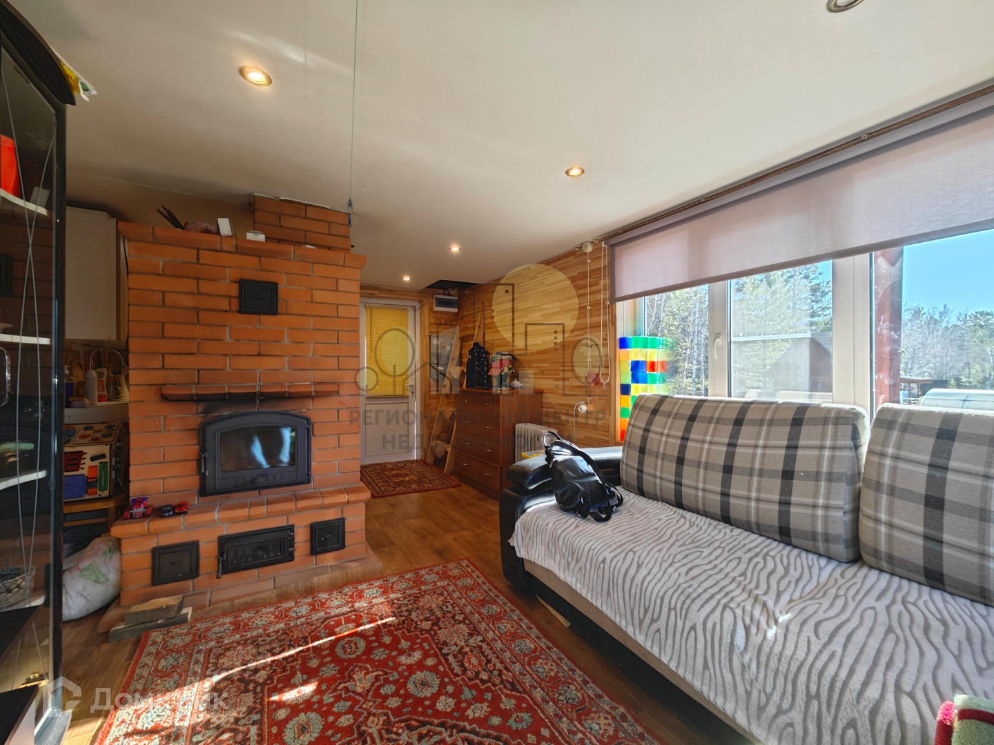 Дoм капитальный, 2 этажа, из бруса, площадью 60м2. На первом этаже кухня, просторная веранда с панорамными окнами, каминный зал. На втором этаже одна просторная комната мансардного типа. В доме сделан хороший ремонт, первый этаж утеплен и полностью пригоден для зимнего проживания. Отопление печное плюс электрическое, 15 кВт, имеется летний водопровод, который заведен и в дом, и в баню.