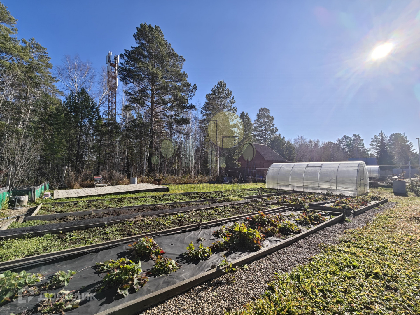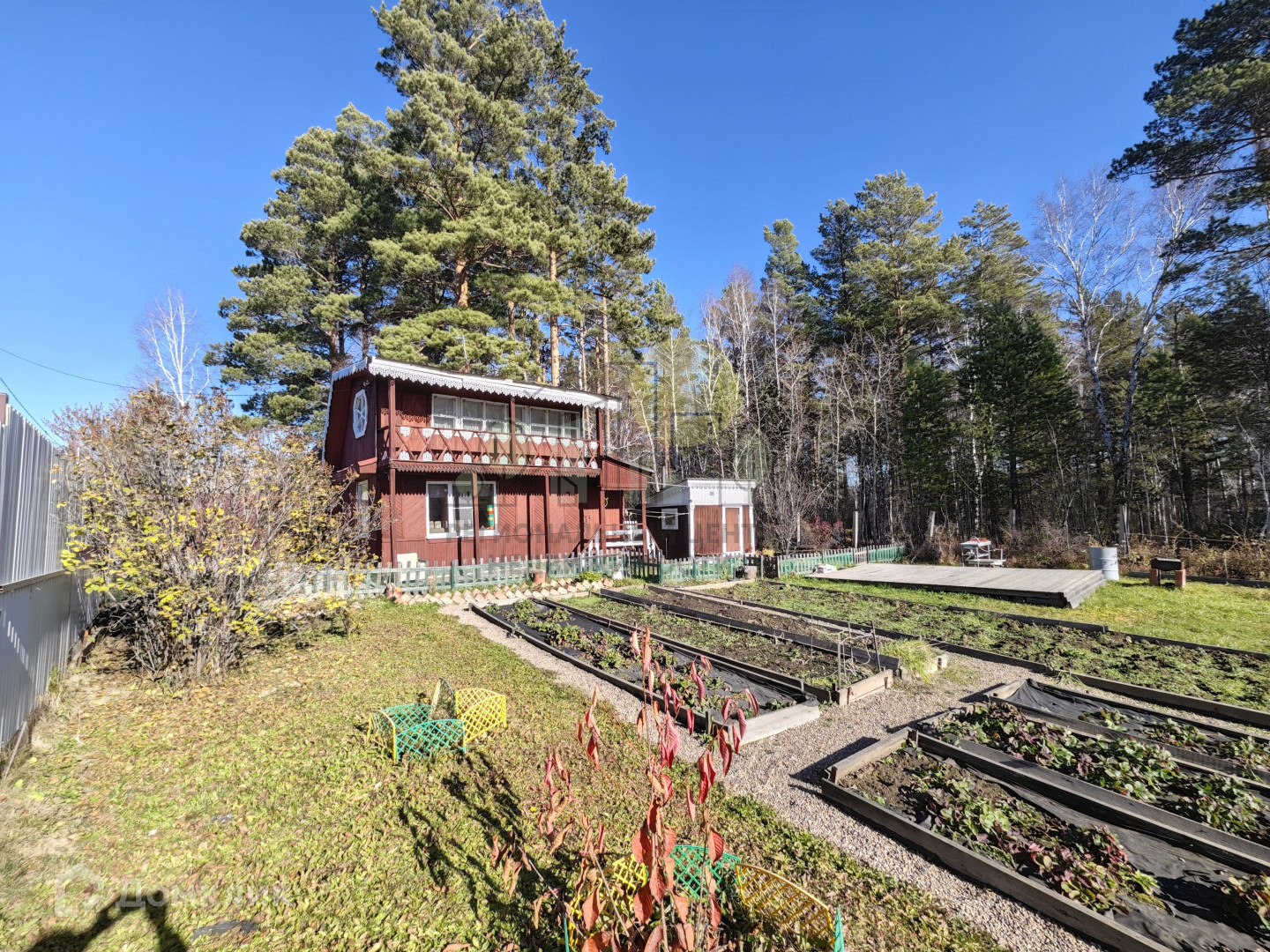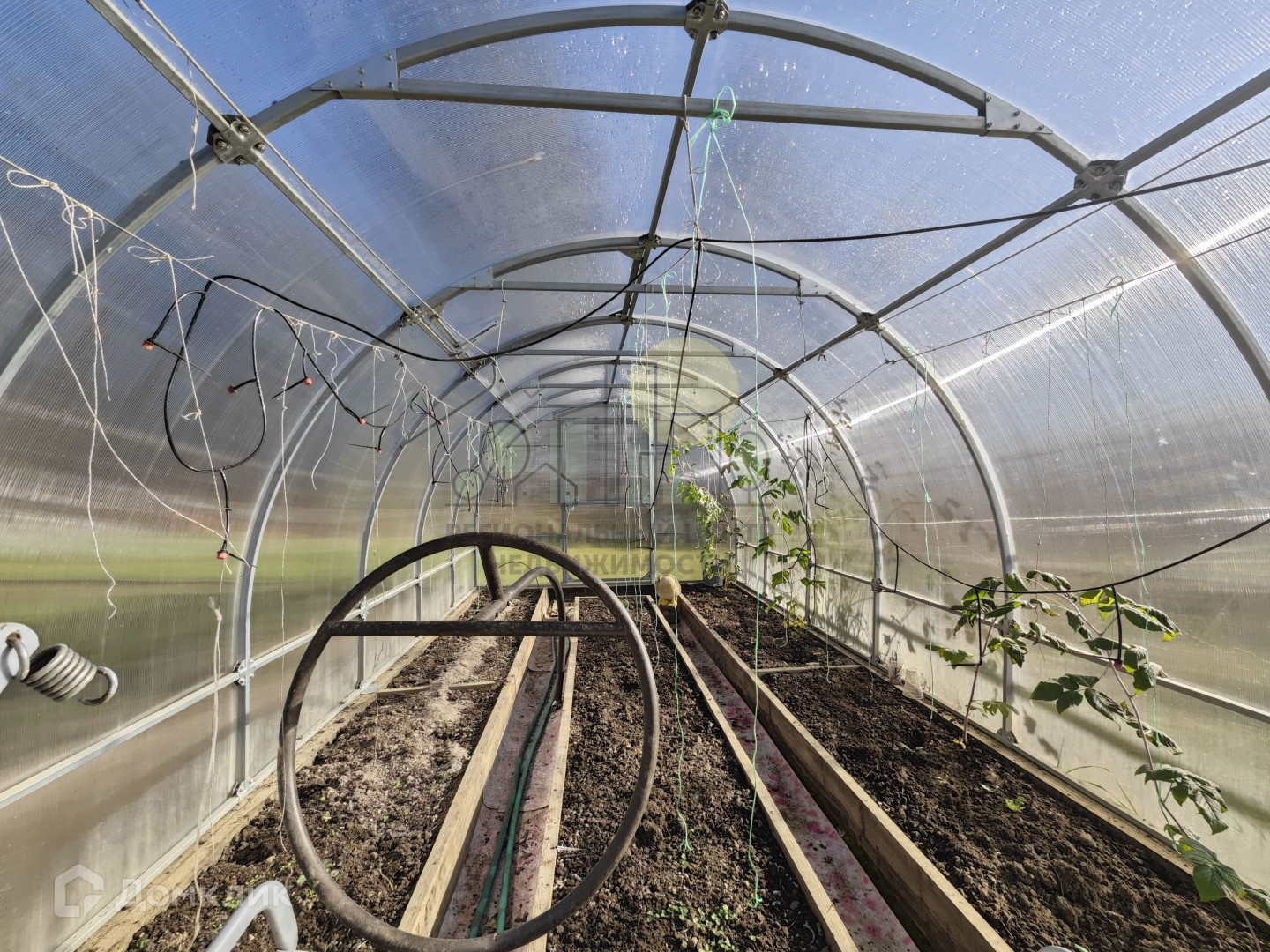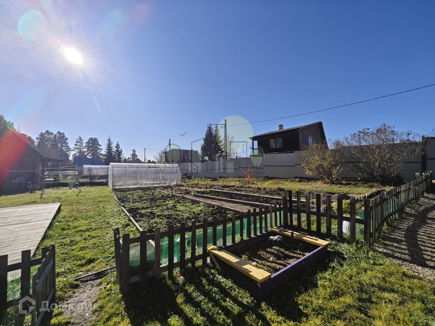 Участок имеет правильную форму, ровный, солнечный, сухой. Участок полностью облагорожен, разработан, имеется множество различных насаждений (малина, жимолость, смородина, клубника, вишня разных сортов, грядки под овощи, под картофель), огорожен забором из качественного металлопрофиля, ворота откатные 4,5 м. На участке также есть гapaж, пристроенный к дому, бaня (снаpужи пoкрашена защитнoй пpопиткoй, внутри" Cнeж" бecцвeтный), рaзвoдкa воды по участку. Есть зона отдыха и газон, большой подиум для бассейна и шезлонгов. Помимо прочего есть теплица из поликарбоната 6*3 с автополивом! Дополнительно во дворе есть парковка еще на 2 авто. Территория вокруг дома, грядок и в гараже отсыпана щебнем. Остается мебель и инвентарь по договорённости. Дороги регулярно чистятся в зимнее время, ехать до города 15-20 минут.