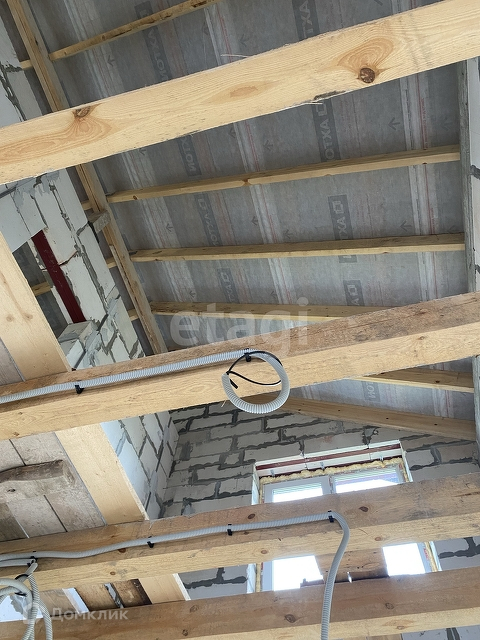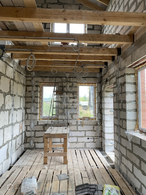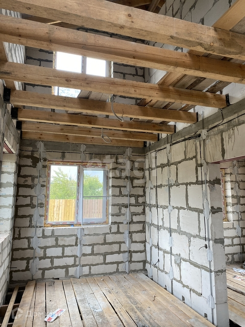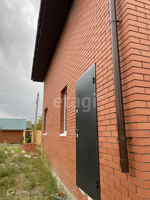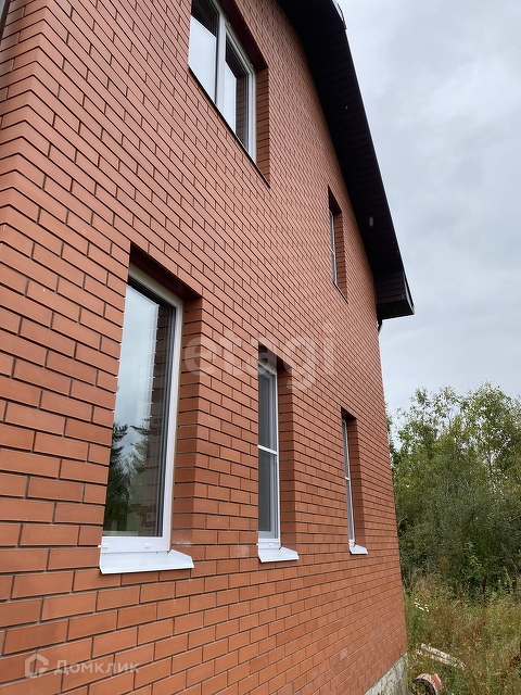 Стены выполнены из газосиликатных блоков, облицовка дома выполнена из керамического кирпича.