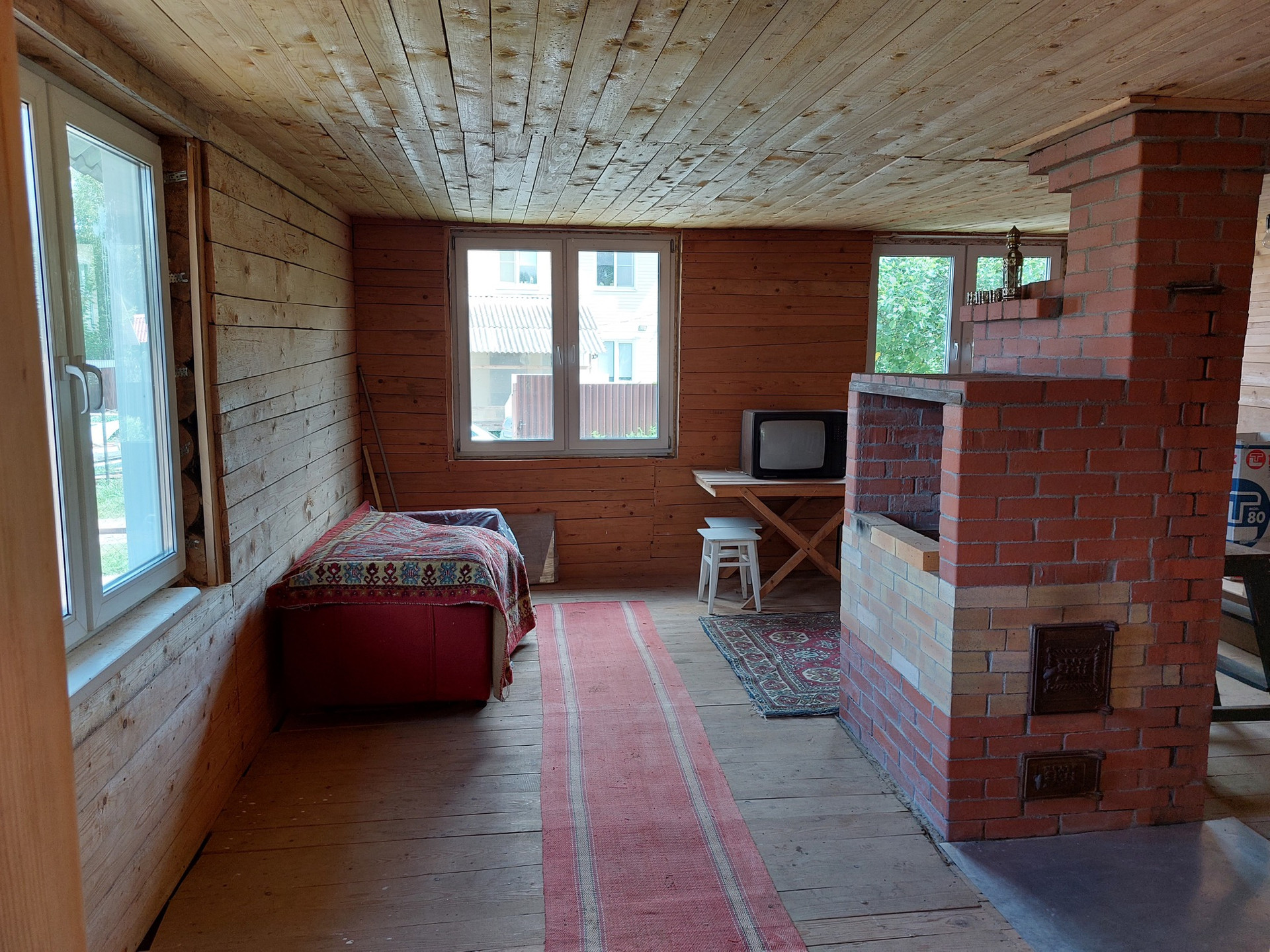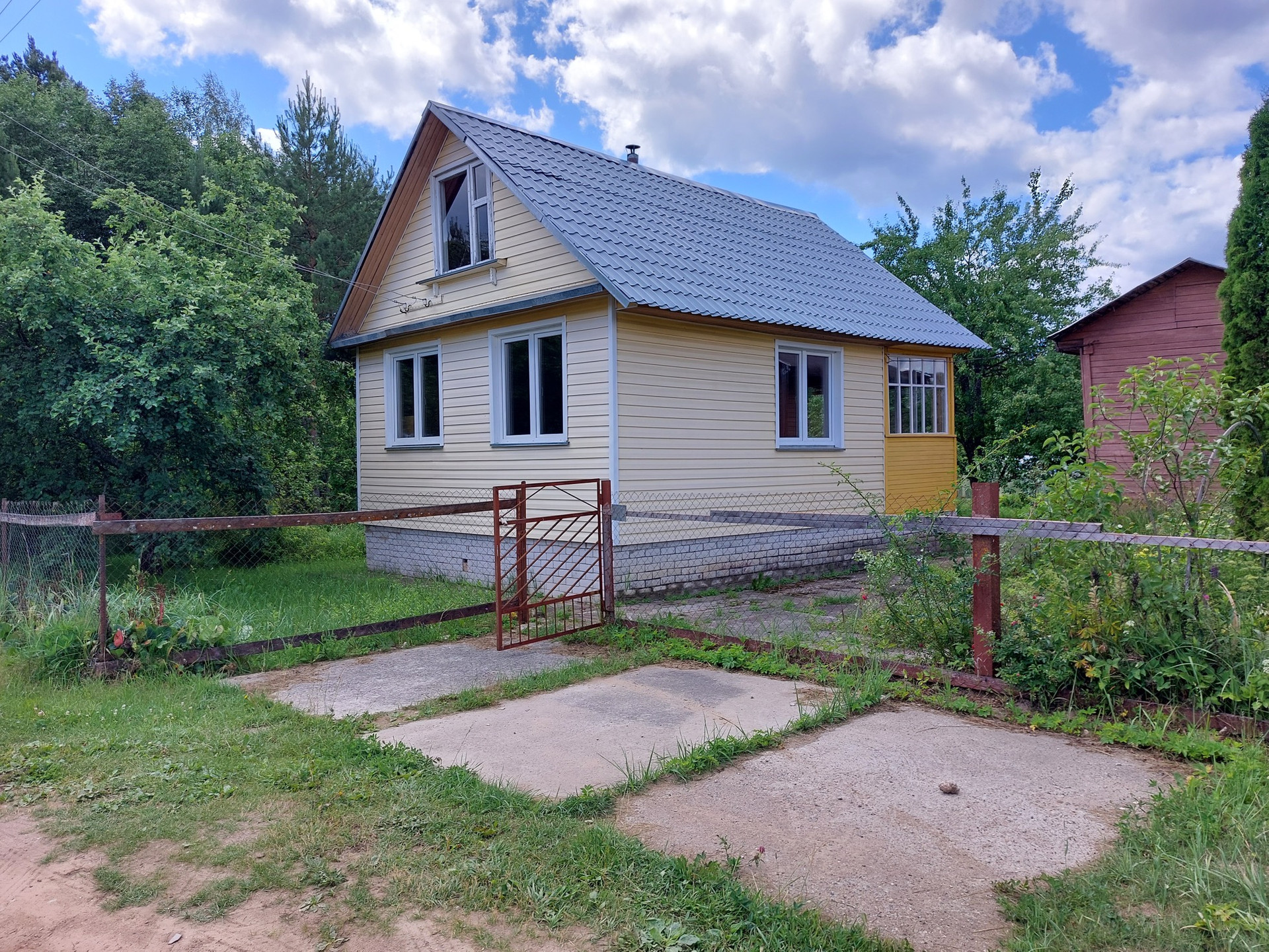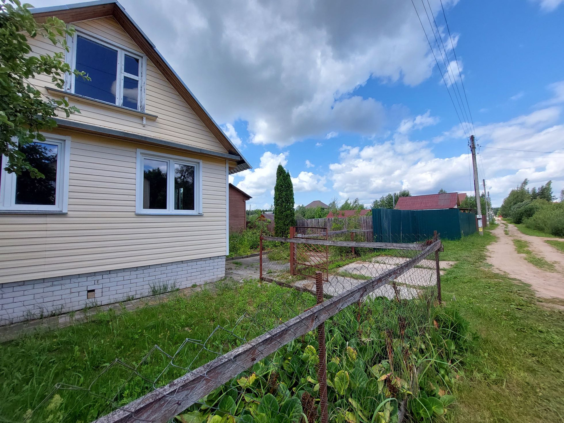 Дом 2005 года постройки. Ленточный фундамент, бревенчатые стены, пластиковые окна, печное отопление. Возможно проживание круглогодично. Электричество заведено в дом. Позже был сделан 2-й этаж (мансарда). Дом строился качественно.