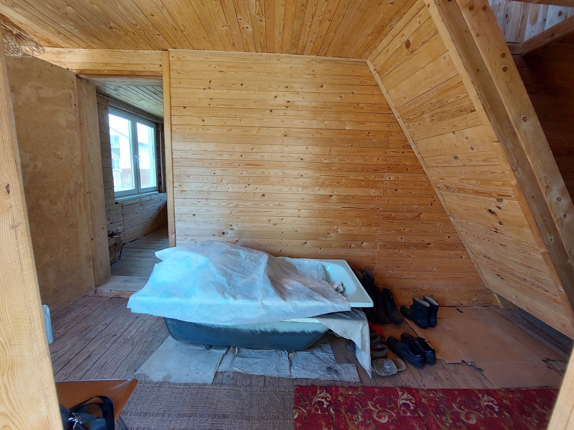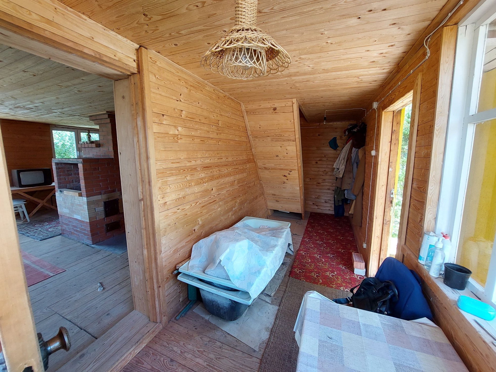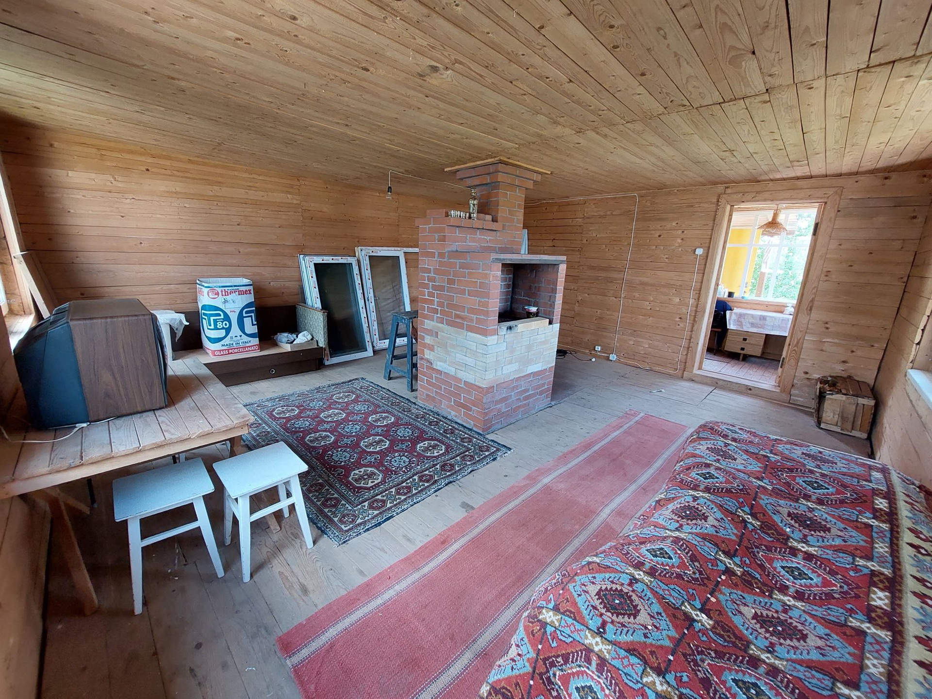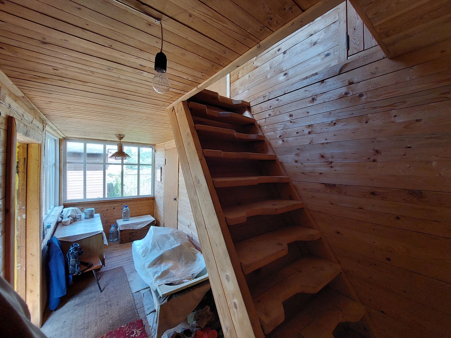 Дом 2005 года постройки. Ленточный фундамент, бревенчатые стены, пластиковые окна, печное отопление. Возможно проживание круглогодично. Электричество заведено в дом. Позже был сделан 2-й этаж (мансарда). Дом строился качественно.