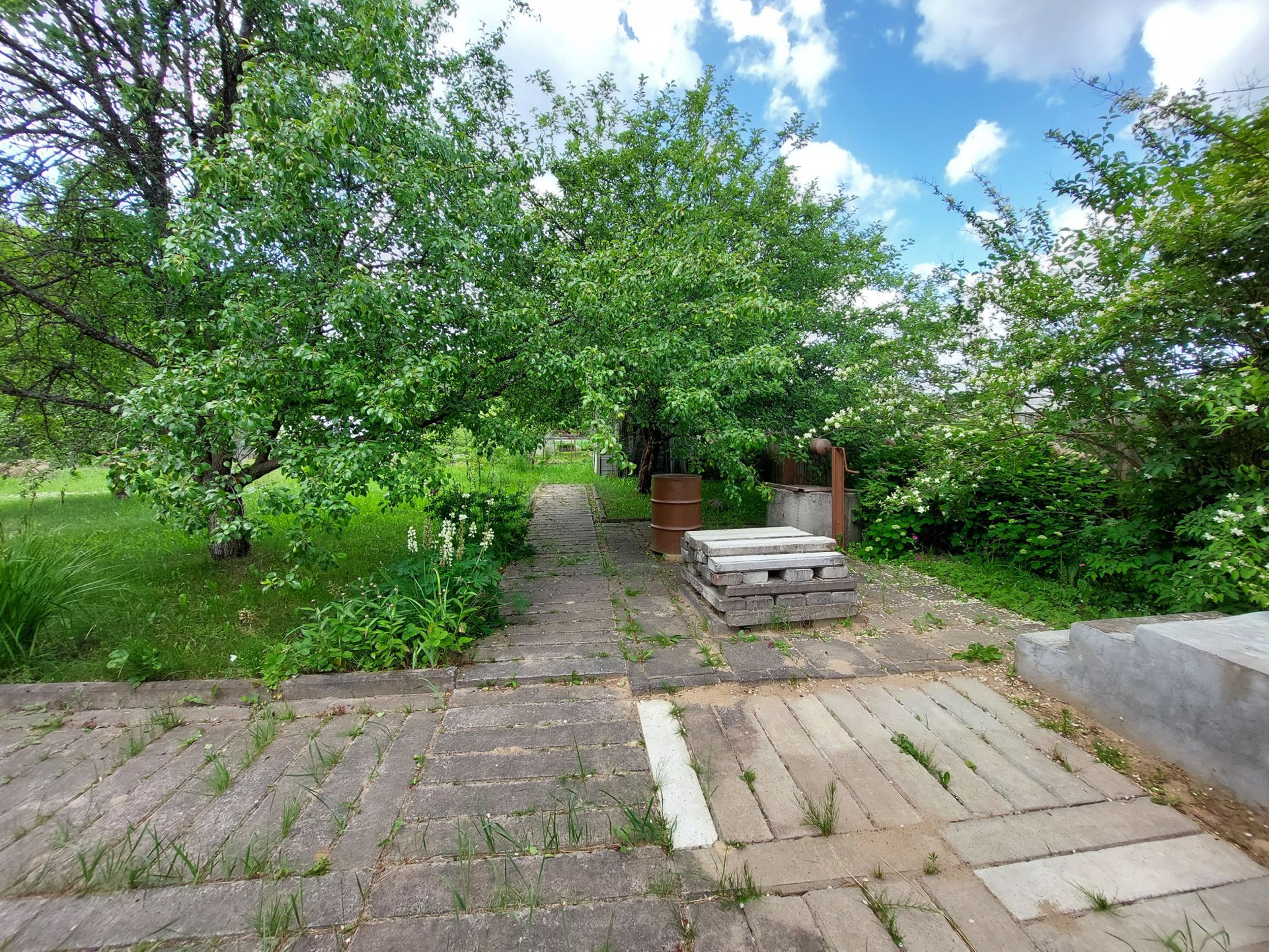 Земельный участок ровный, сухой и прямоугольной формы. Имеется забетонированная парковка около участка на один автомобиль.