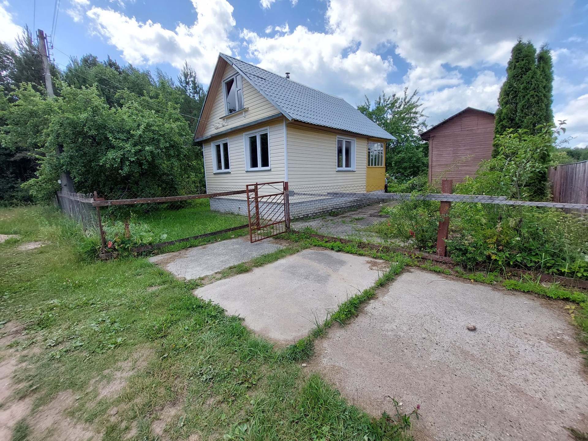 имеется забор по всему периметру (деревянный забор и сетка рабица);