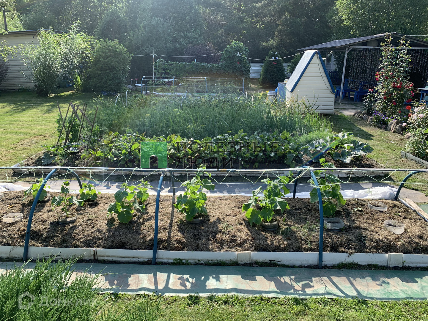 В садовом доме: 1 этаж - кухня/комната, гостевая комната, 2 этаж - комната с остекленным балконом.