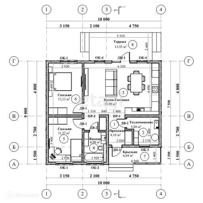 Общая площадь 90 м2