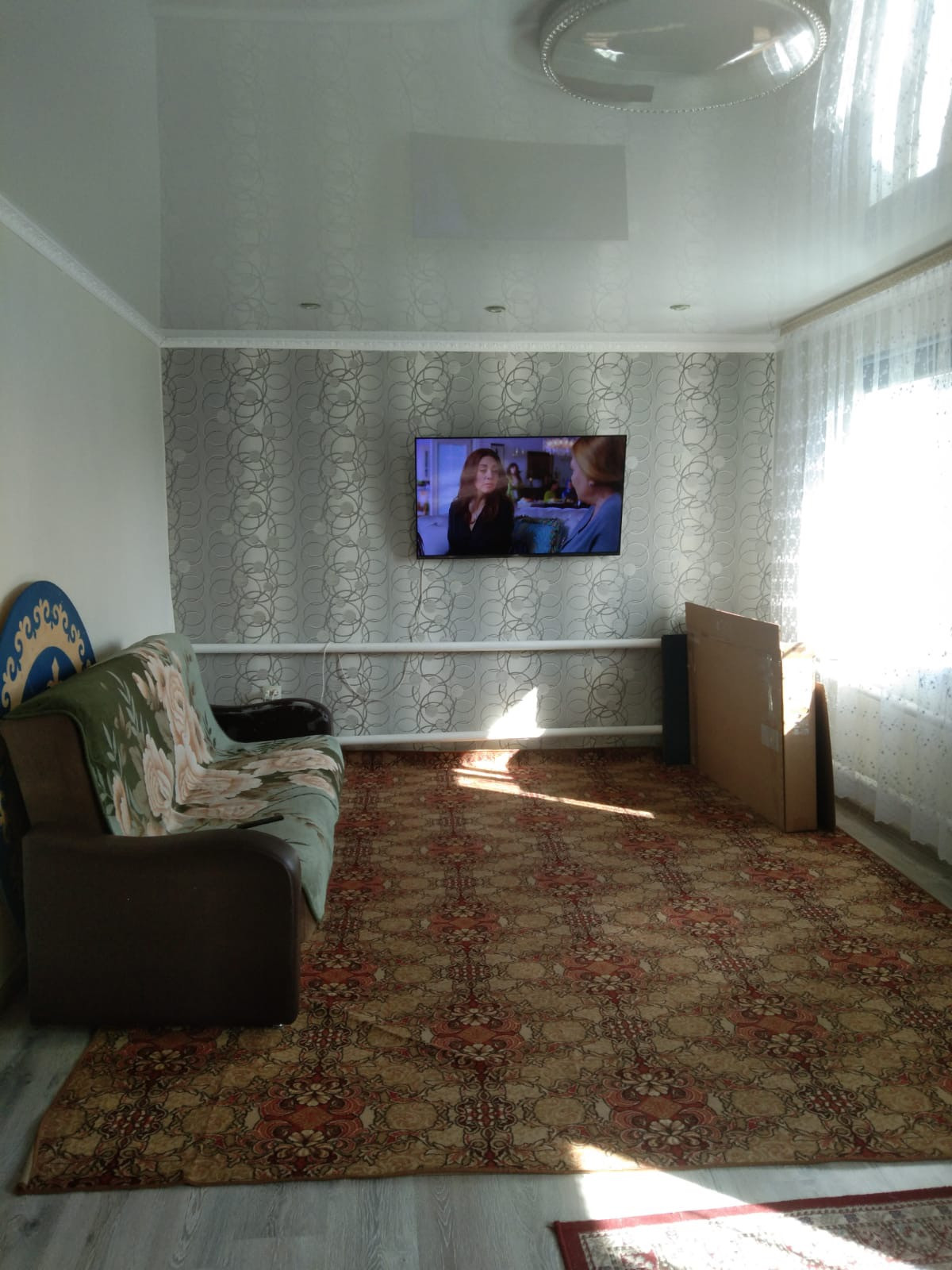 В доме везде натяжные потолки, окна ПВХ.