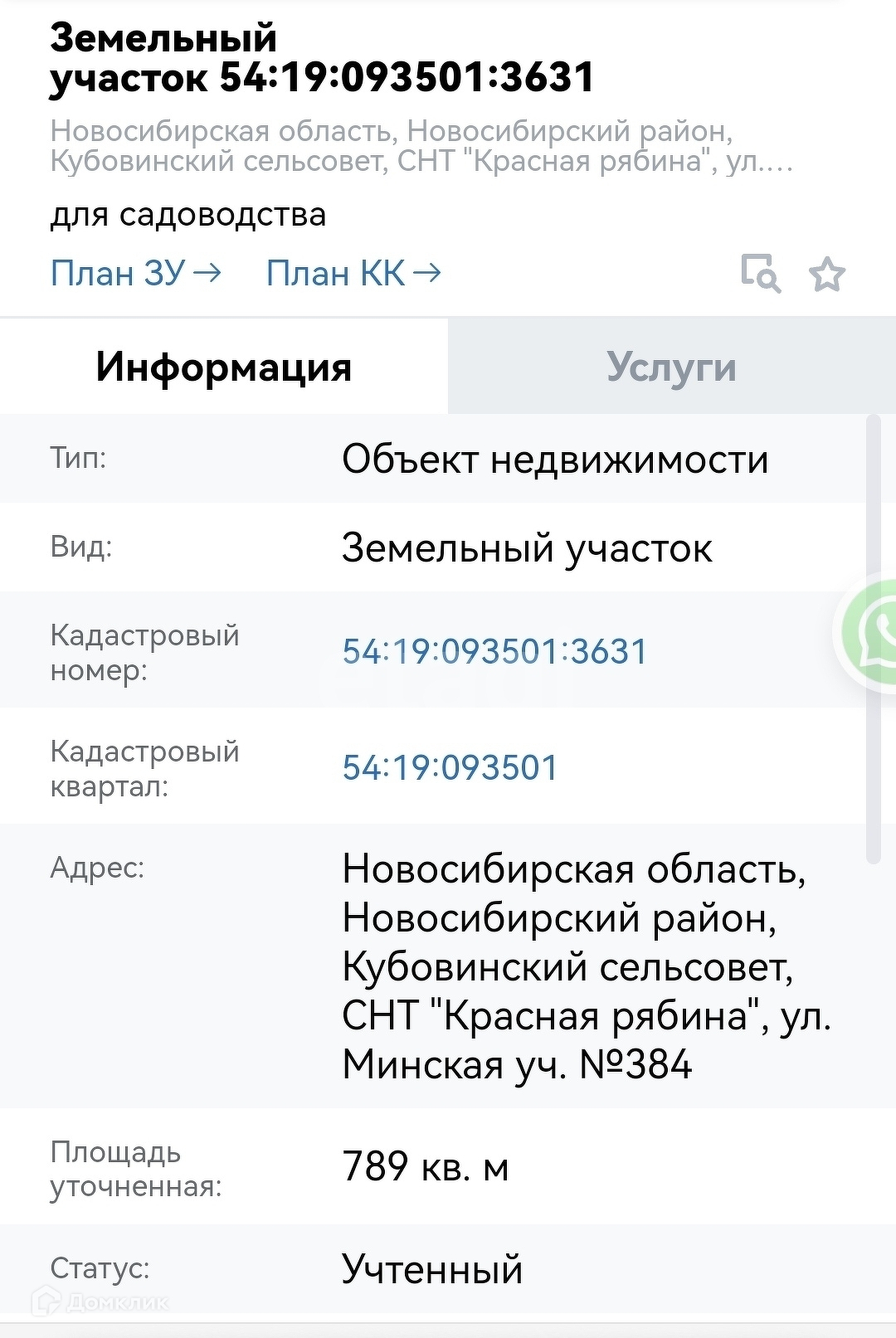 Участок в СНТ, 7.9 сот. на продажу в СНТ Красной Рябине, Минская улица, 384