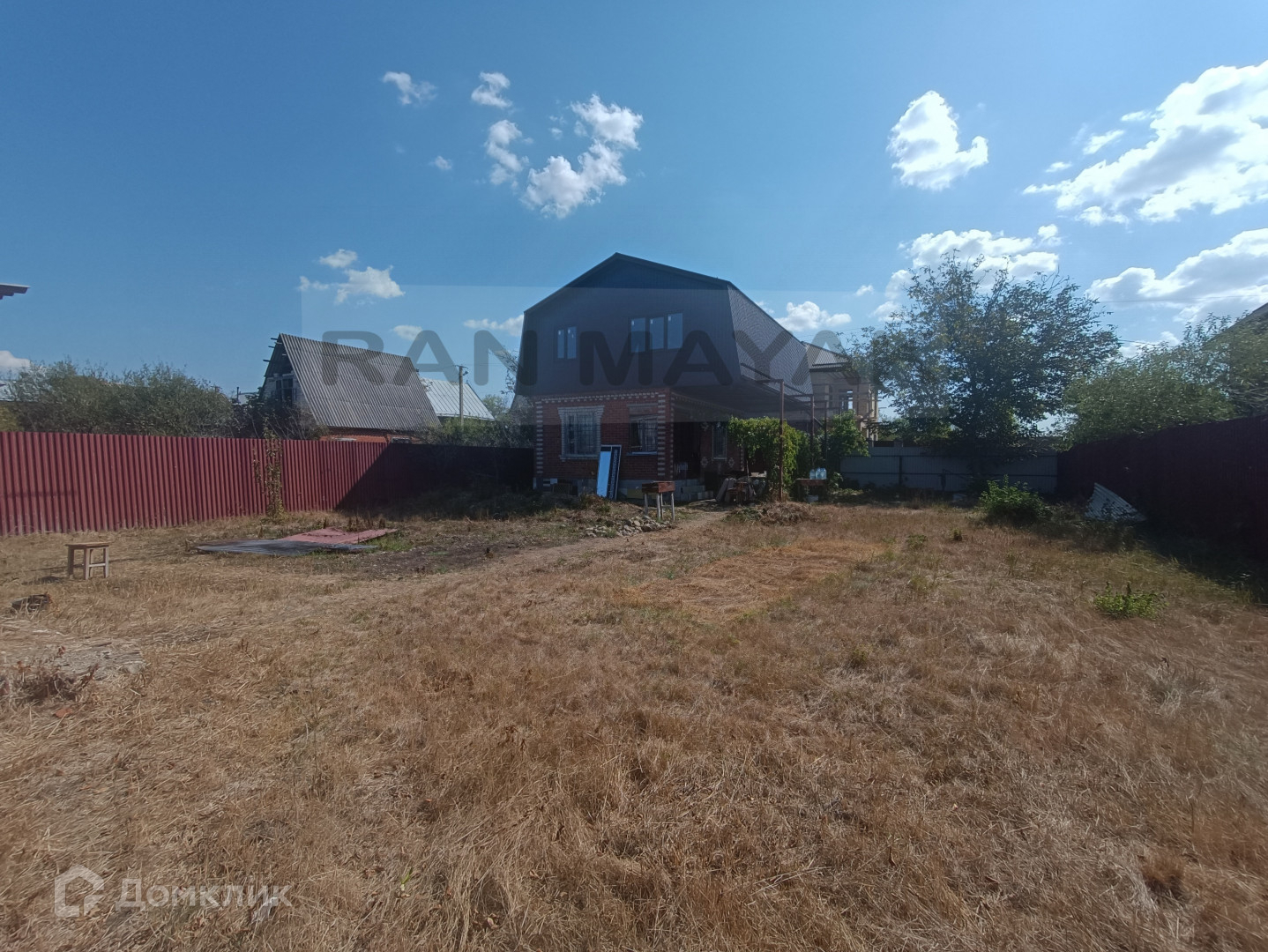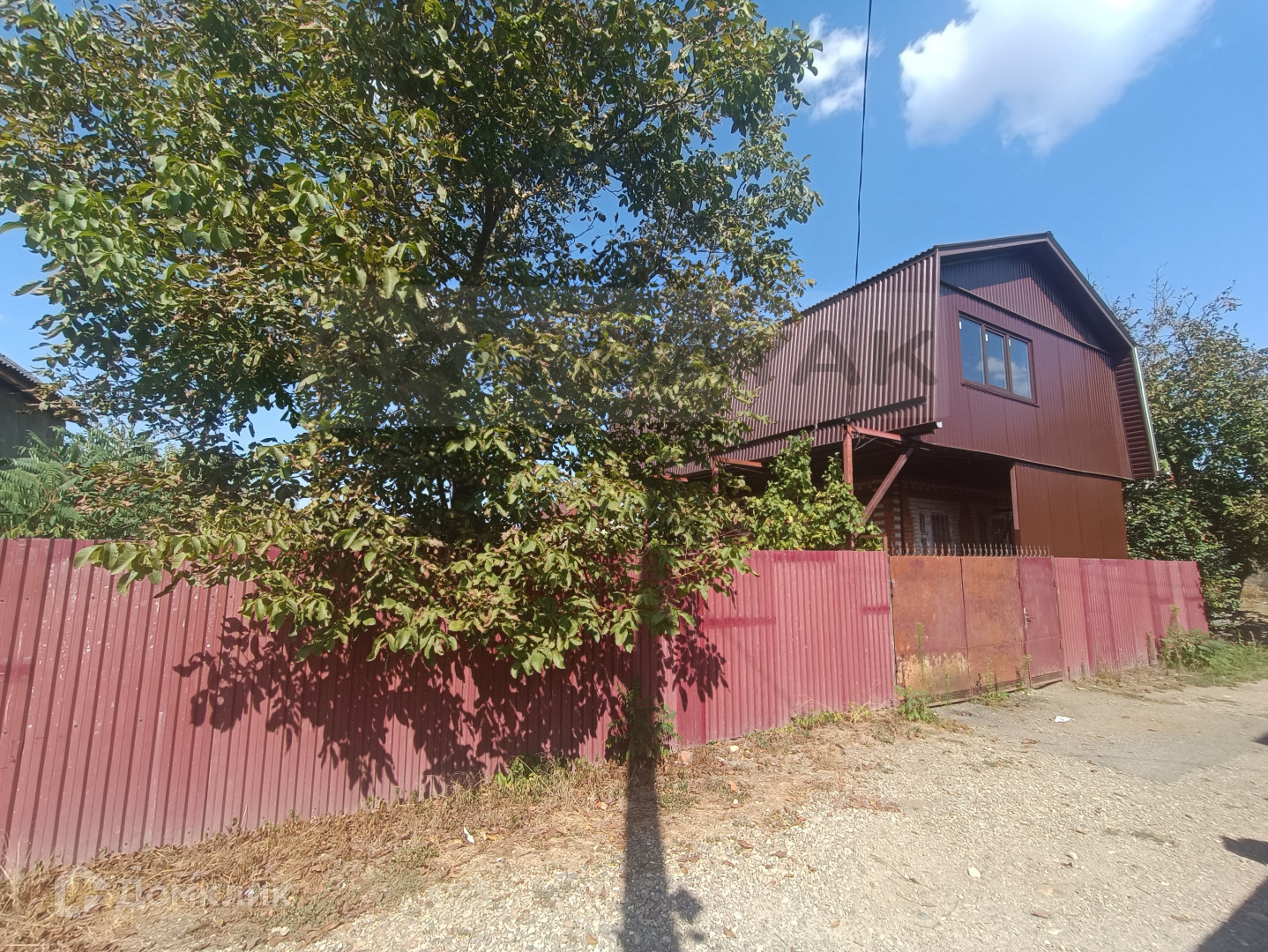 Участок полностью огорожен забором, по гравийной дороге